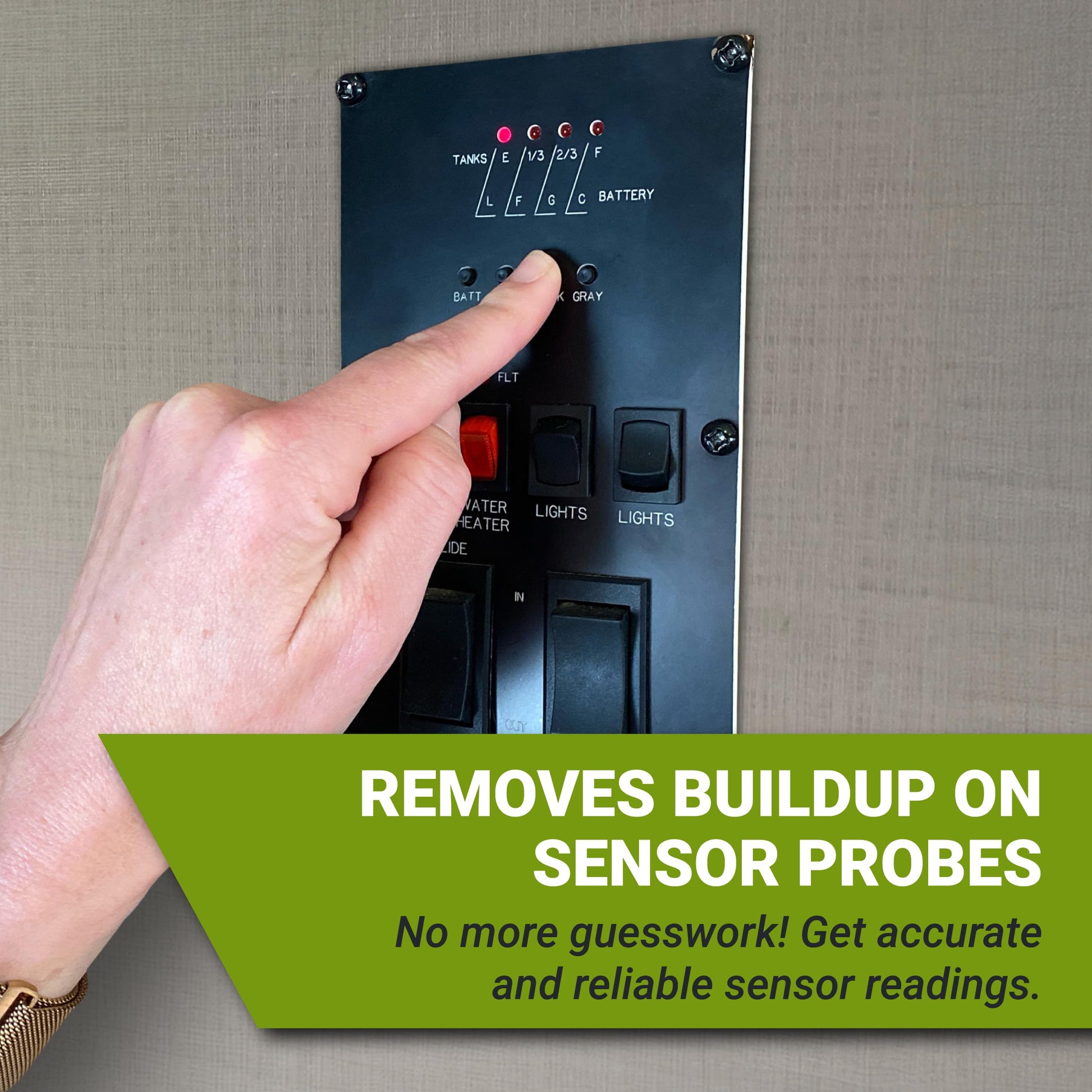• Maintains working sensor probes. Stops black water tank sensor probes from misreading by liquifying waste before it clings to probes. Works in RV gray tanks by digesting grease, oil and food debris!