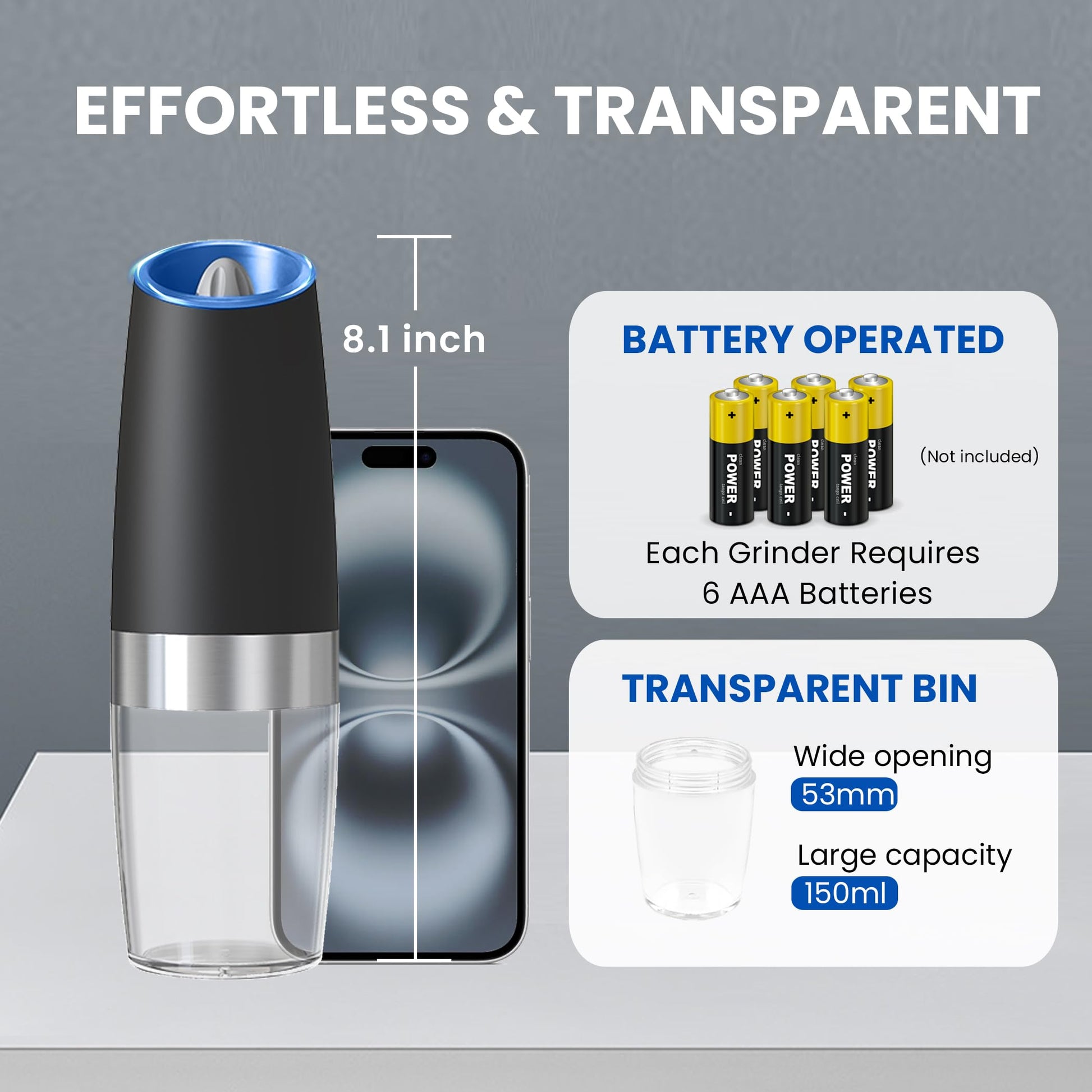 • Consistent Excellence: The UNNEES battery operated salt and pepper grinder set, powered by an efficient motor and innovative design with 6 AAA batteries(not included), guarantees enduring and robust grinding, effortlessly meeting culinary perfection