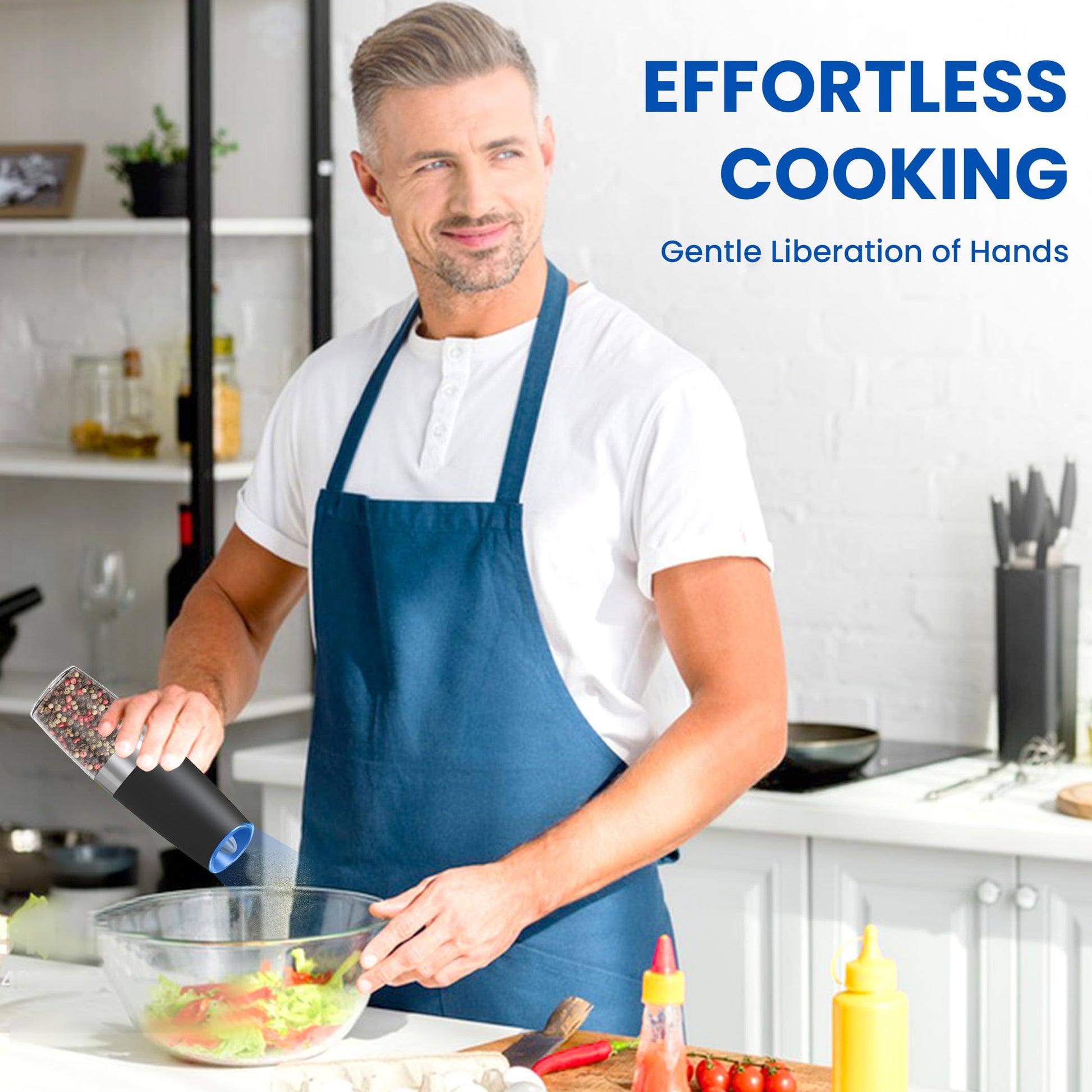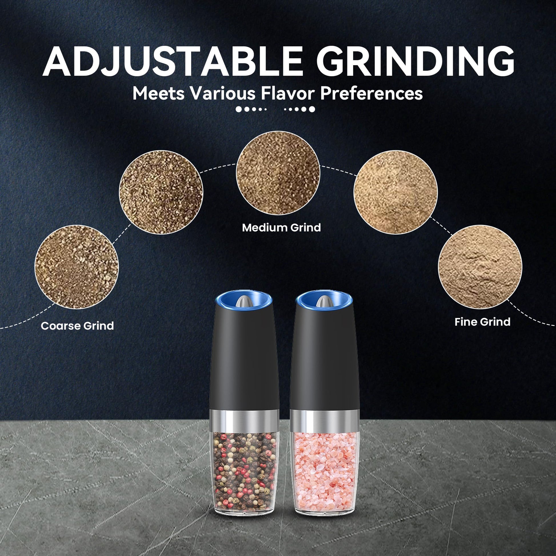 • Precision at Its Best: The UNNEES gravity electric salt and pepper grinder set, with gravity-fed dispensing, blue LED lights, and adjustable coarseness settings, delivers personalized grinding for professional precision every time