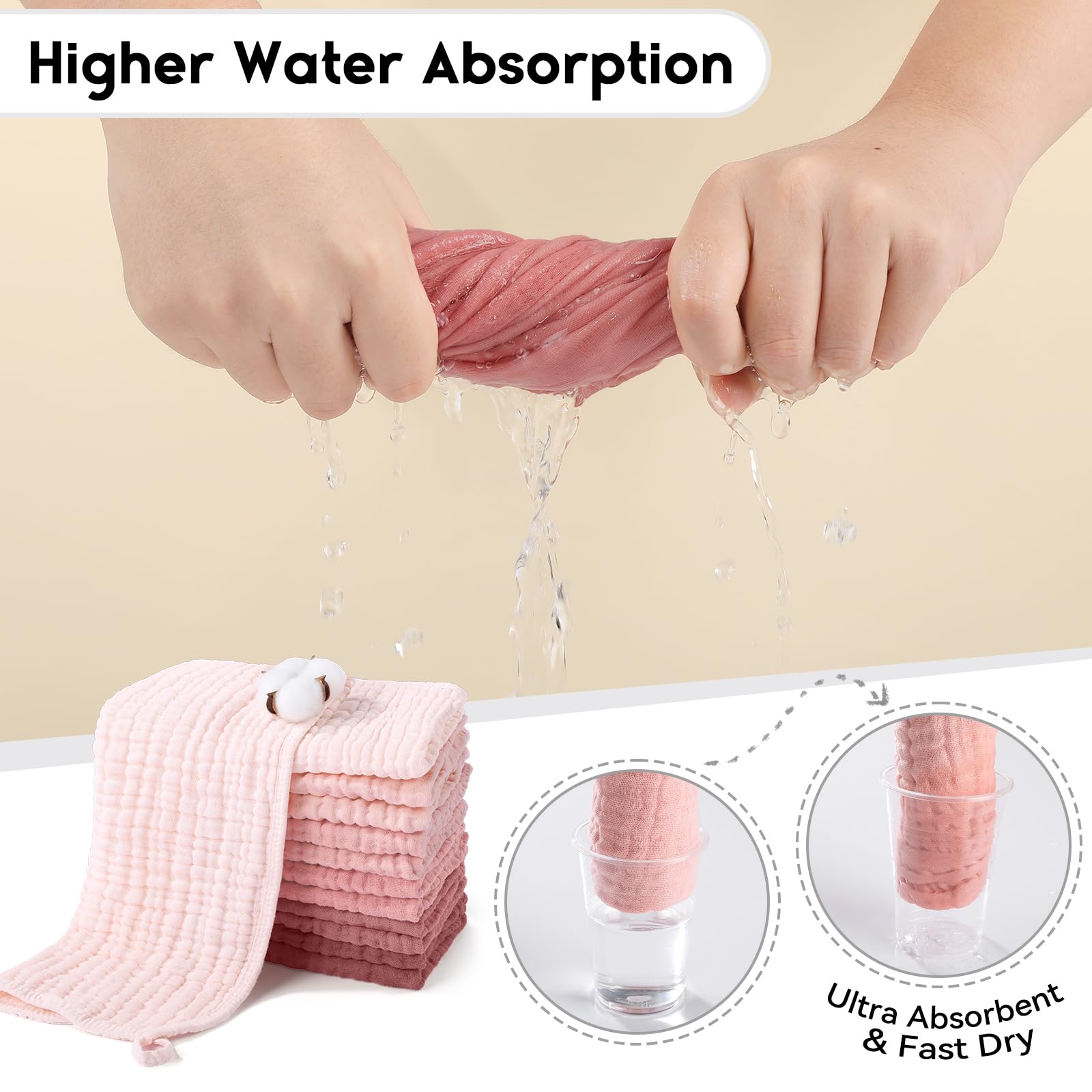 • ❤Care Without Hassle: Pre-washing technology effectively reduces the shrinkage and reinforced edges prevent unraveling, which ensures the baby burp cloths can be machine washed and dried at low temperatures, it will still in shape and even get softer after washing several times. We care not only for babies, but also for busy parents!