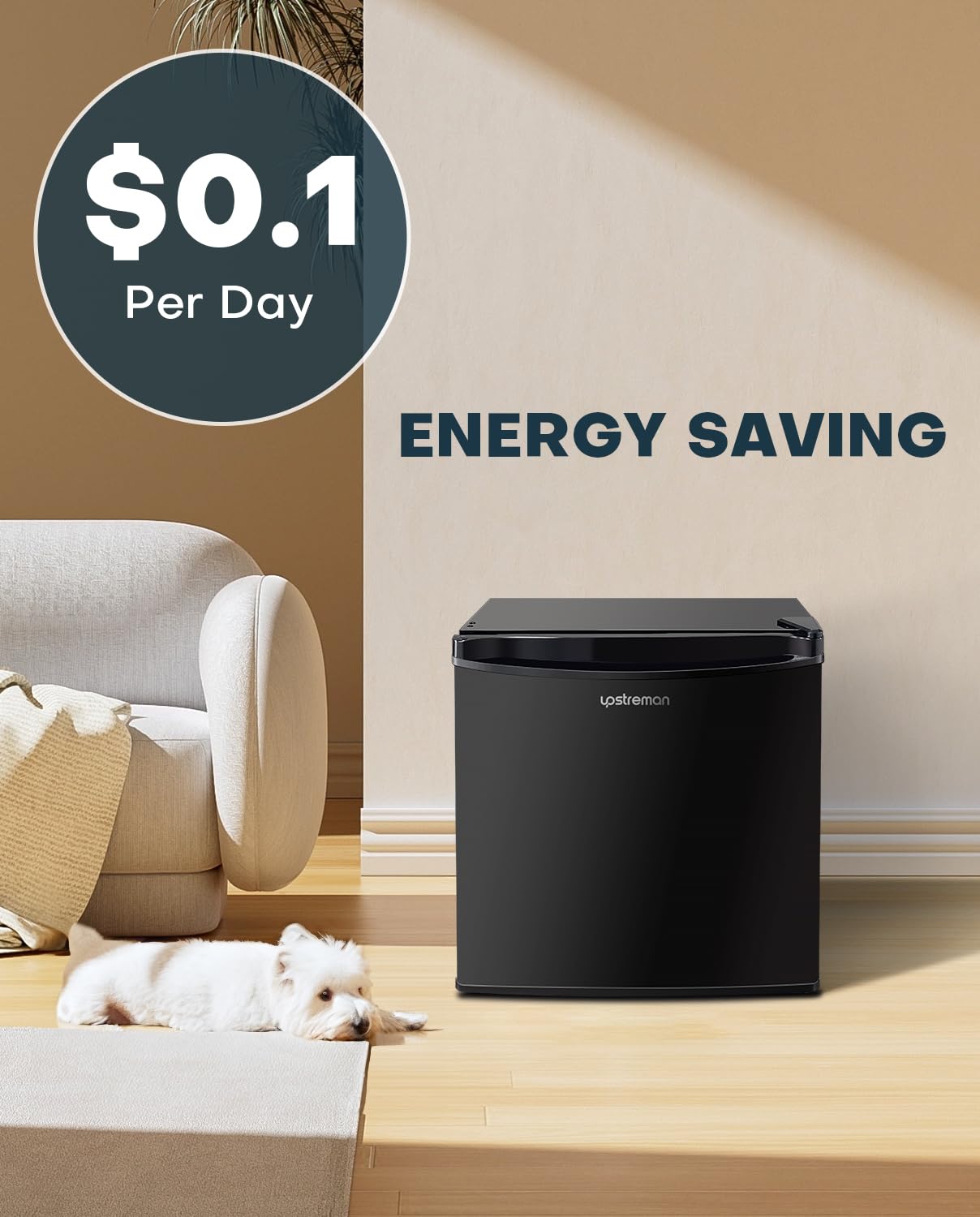 Upstreman 1.7 Cu.ft Mini Fridge with Freezer, Dorm Essentials, Adjustable Thermostat, Energy Saving, Low Noise, Single Door Compact Refrigerator for Dorm, Office, Bedroom, Black-FR17
