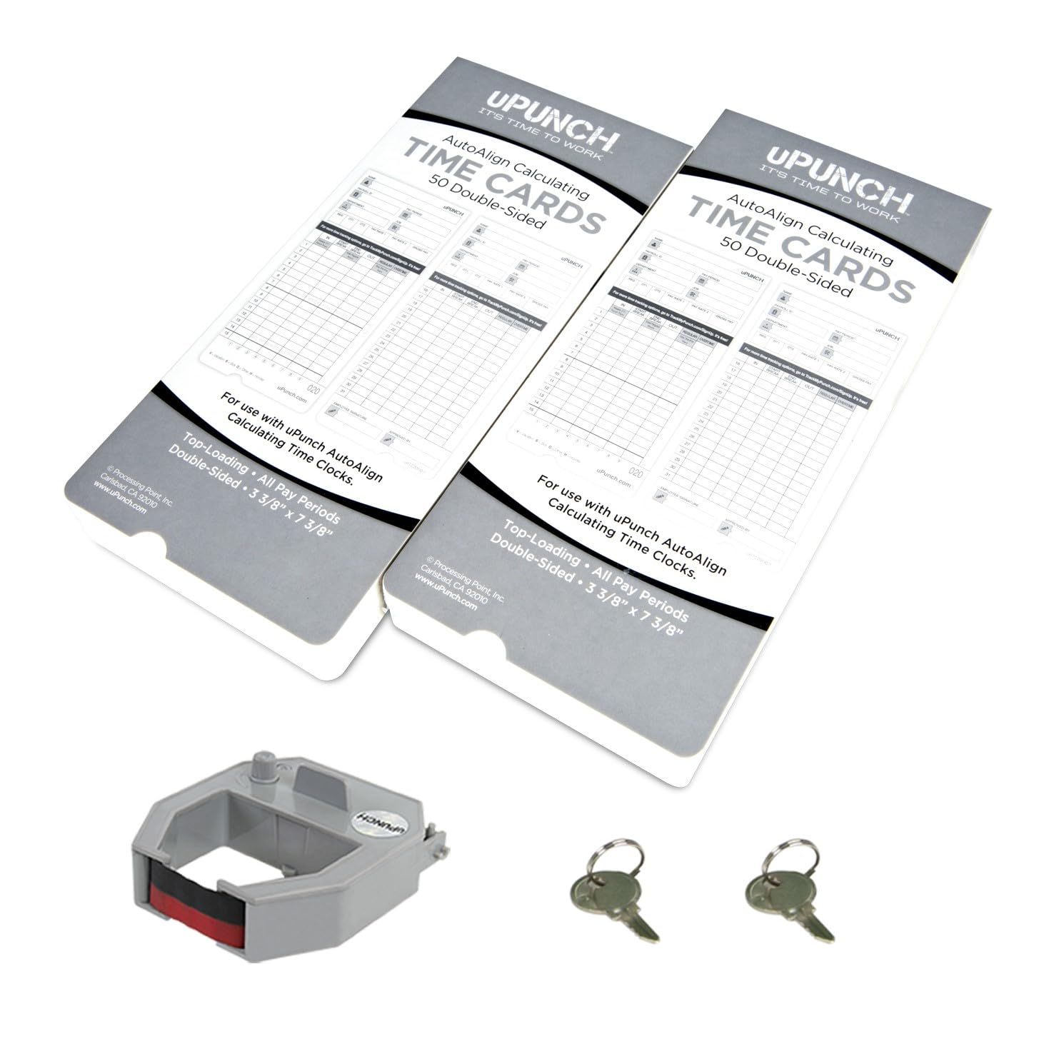 uPunch HN2500 Calculating Time Clock Bundle for Small Business: Auto Align Employee Time Tracking System with 100 Time Cards, Ribbon, and Keys