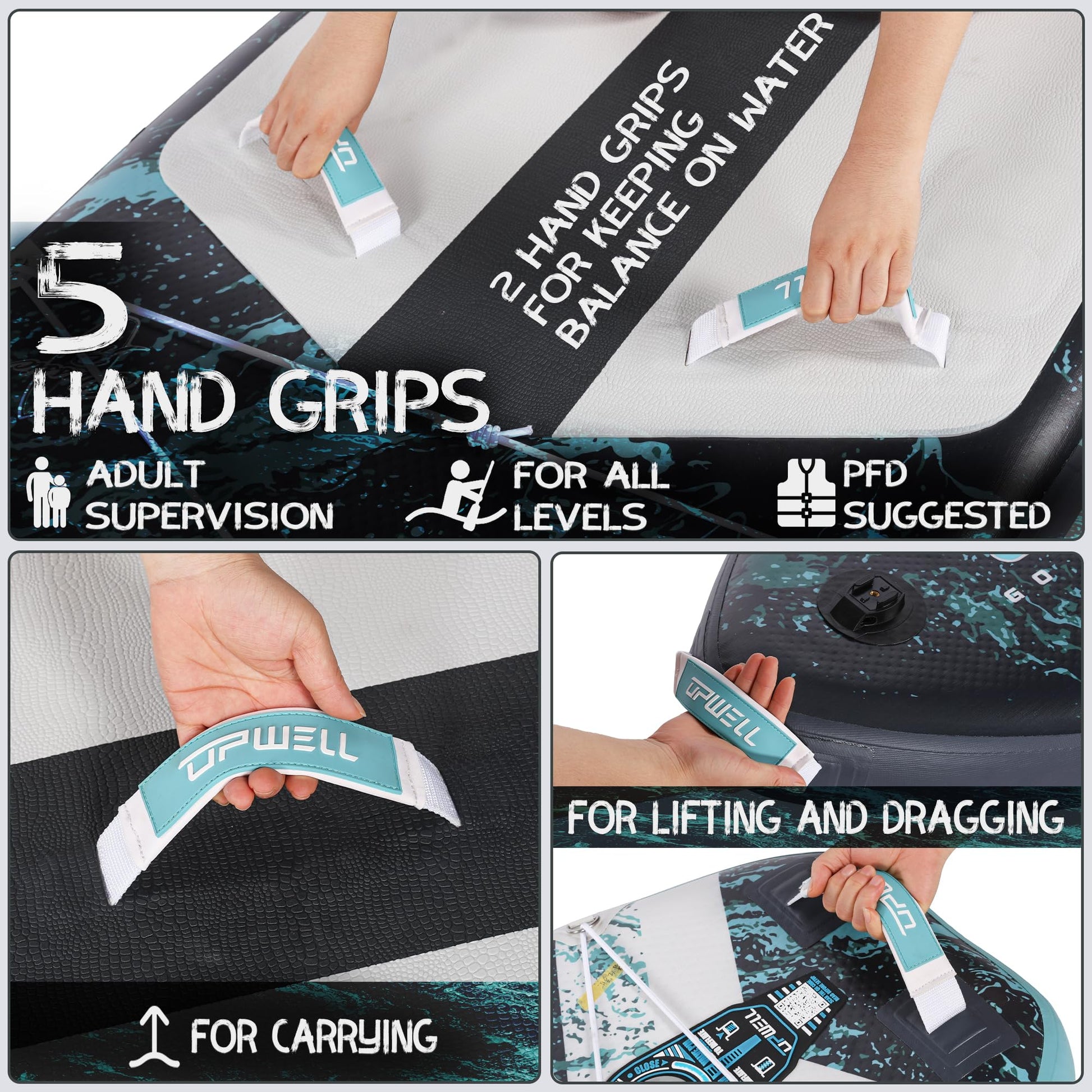 • 【PREMIUM MATERIALS】Our boards are made of the highest quality military grade materials. Ultralight double wall PVC is 25% lighter than other same size products. Meanwhile, this reinforced lightweight fabric creates a firmness, anti-corrosion, wear-resistance sup board which can be used for years. Soft non-slip EVA deck pad makes you feel comfortable while ensuring your stability and safety when you stand for a long time. UPWELL paddle board is your optimal choice for water sports.