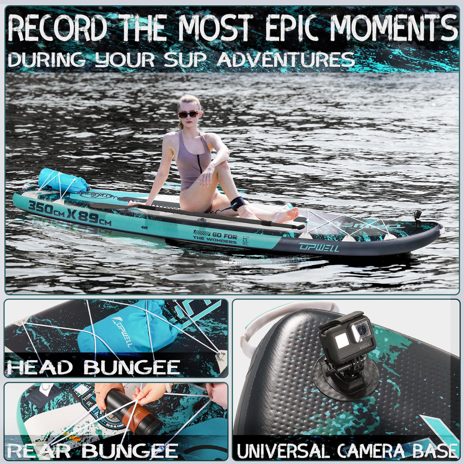 • 【PROFESSIONAL SUP DESIGN】UPWELL inflatable stand up paddle board is 11’6”x 35”x 6”. It's weight capacity up to around 500lbs and 35”super wide design ensures higher stability and flexibility. Our unique design suitable for all beginners and all skill levels to explore and enjoy themselves in different water areas, such as ocean, lake and river, withstand both fresh and salt water. This is an all-around board that can be used for surfing, fishing, touring, yoga and family fun.