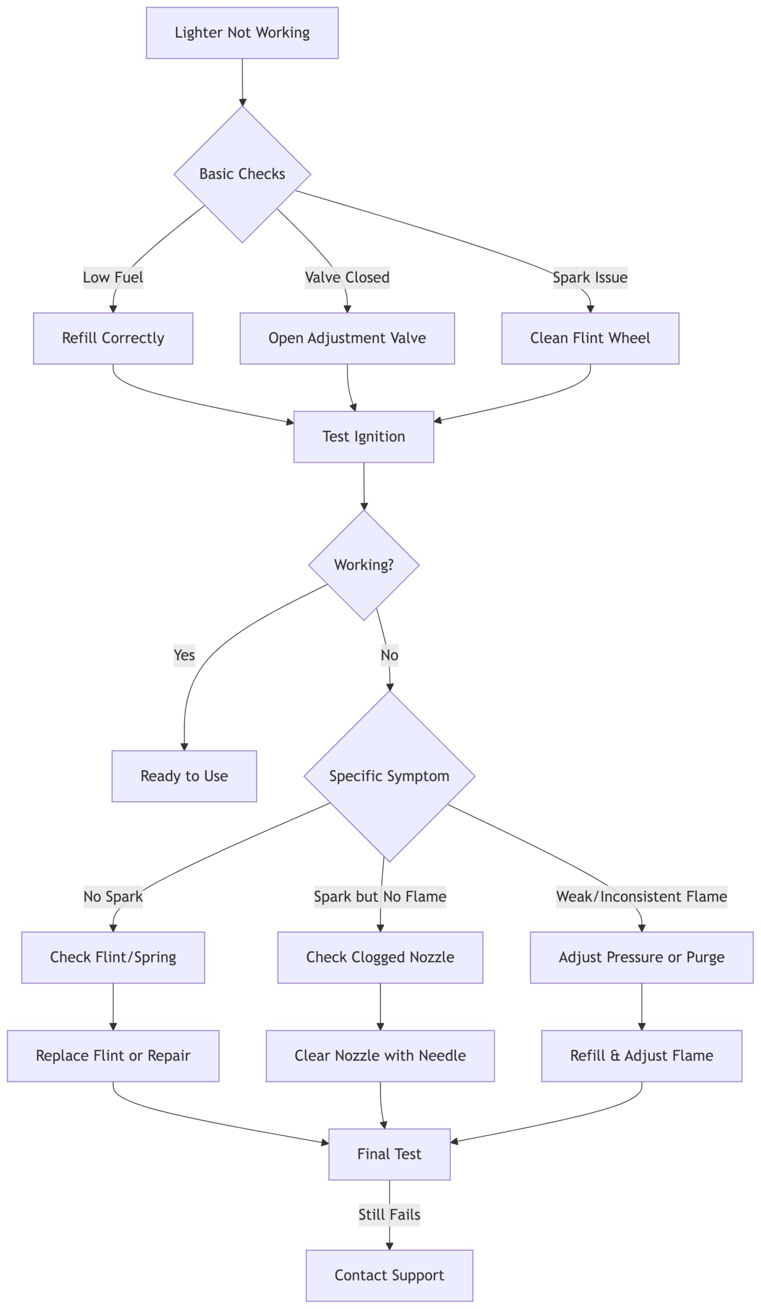 • KEY POINTS: 1.Purge air before first use (press valve for 10 sec), 2. Use high-quality butane (low impurities), 3.Turn the gas valve to right position after filling ('+' for larger, '-' for smaller)