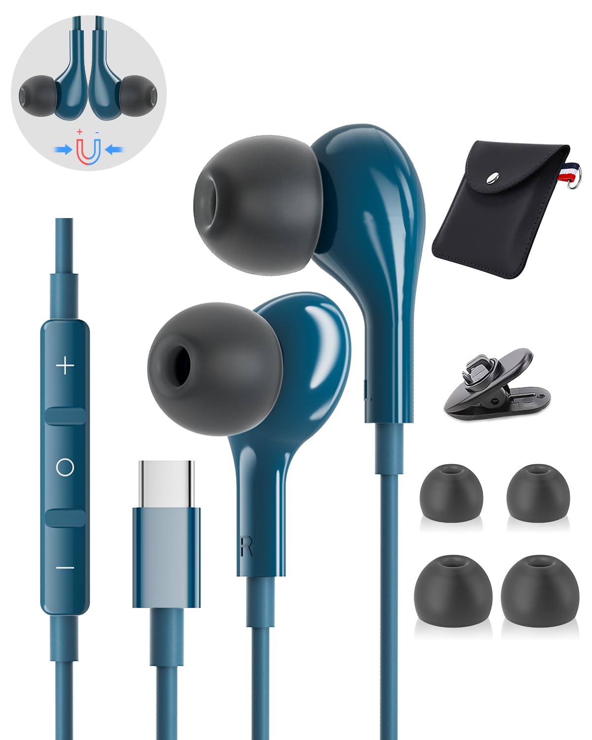 USB C Headphones Wired Earbuds Magnetic in-Ear Headphones C Type for Samsung Galaxy S24 S23 Ultra S25 S22 iPhone 15 16 17 Pro Max iPad Pro with Microphone HiFi Stereo for A56 A54 A35 A54 5g A16
