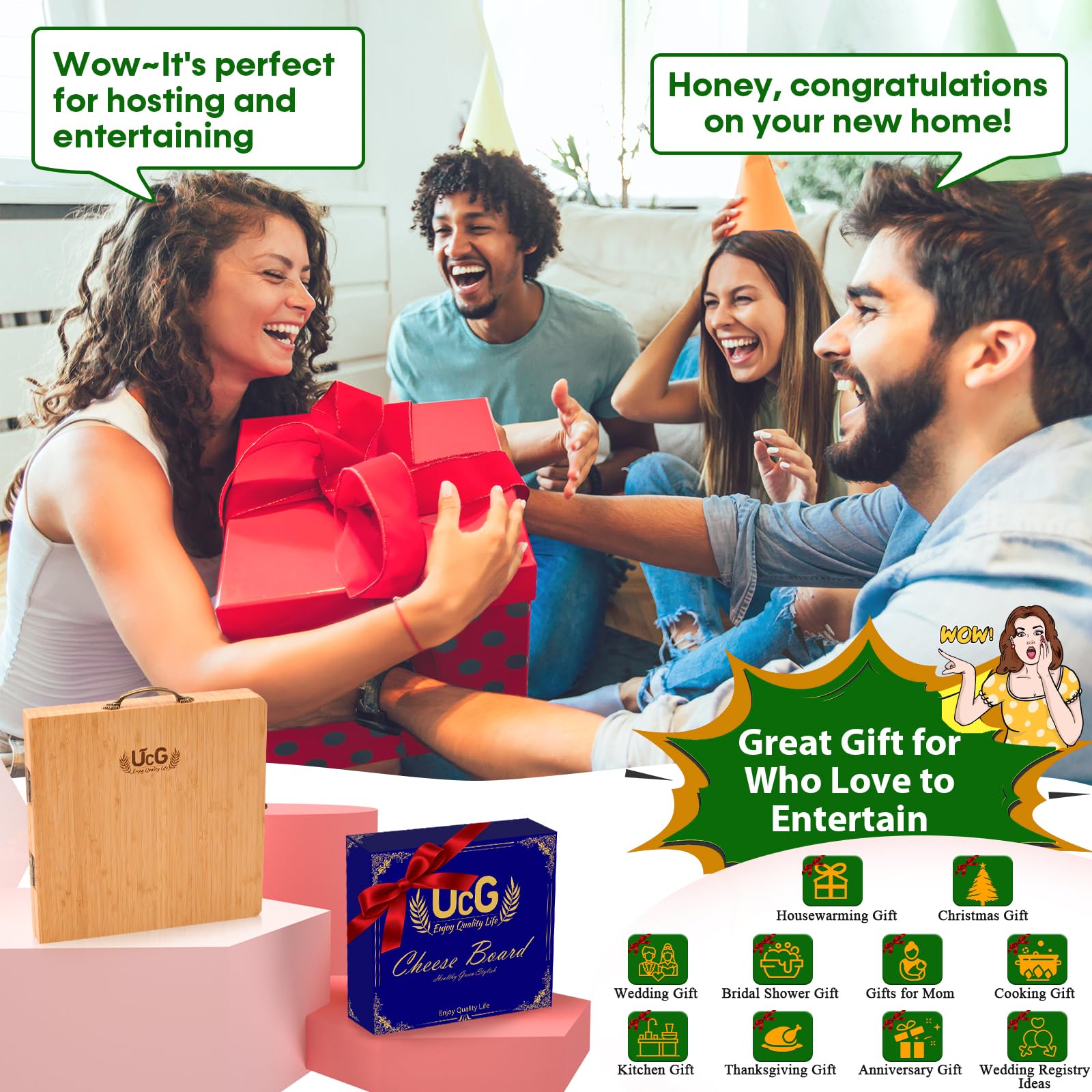 UTCG Bamboo Charcuterie Board Set - Large Folding Cheese Board with Knife Set - Unique White Elephant Gift, House Warming Gift, Wedding Gifts - 22.8 x 11.4 Inches