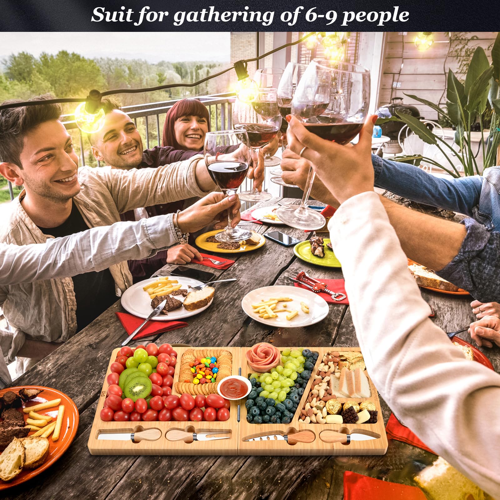 • Portable and Foldable for Easy Storage: This foldable bamboo charcuterie board is perfect for outdoor events like BBQs, tailgates, and family gatherings. Easy to store and transport, making it your go-to companion for outdoor entertaining. Take it on the go for picnics or road trips.