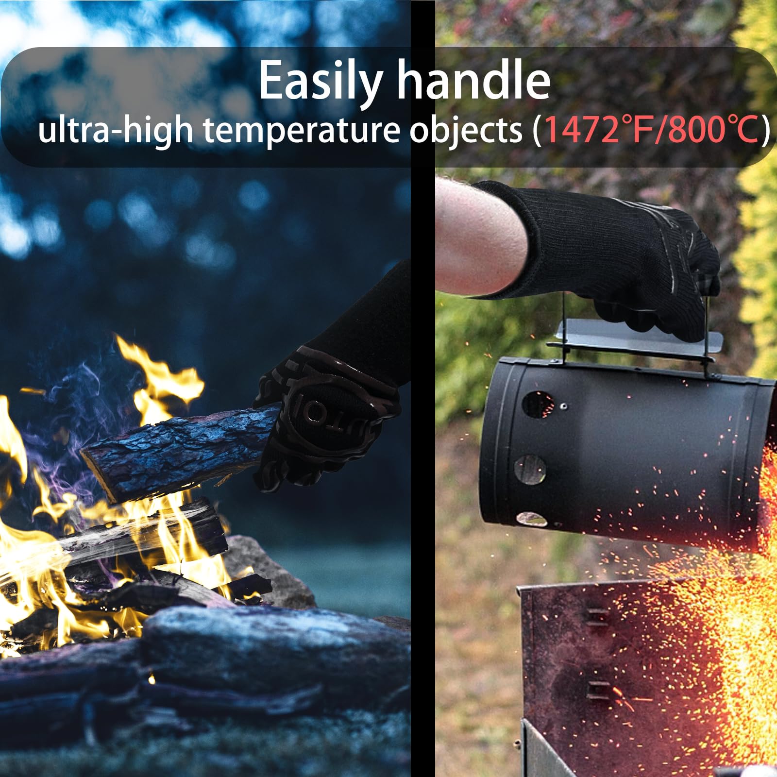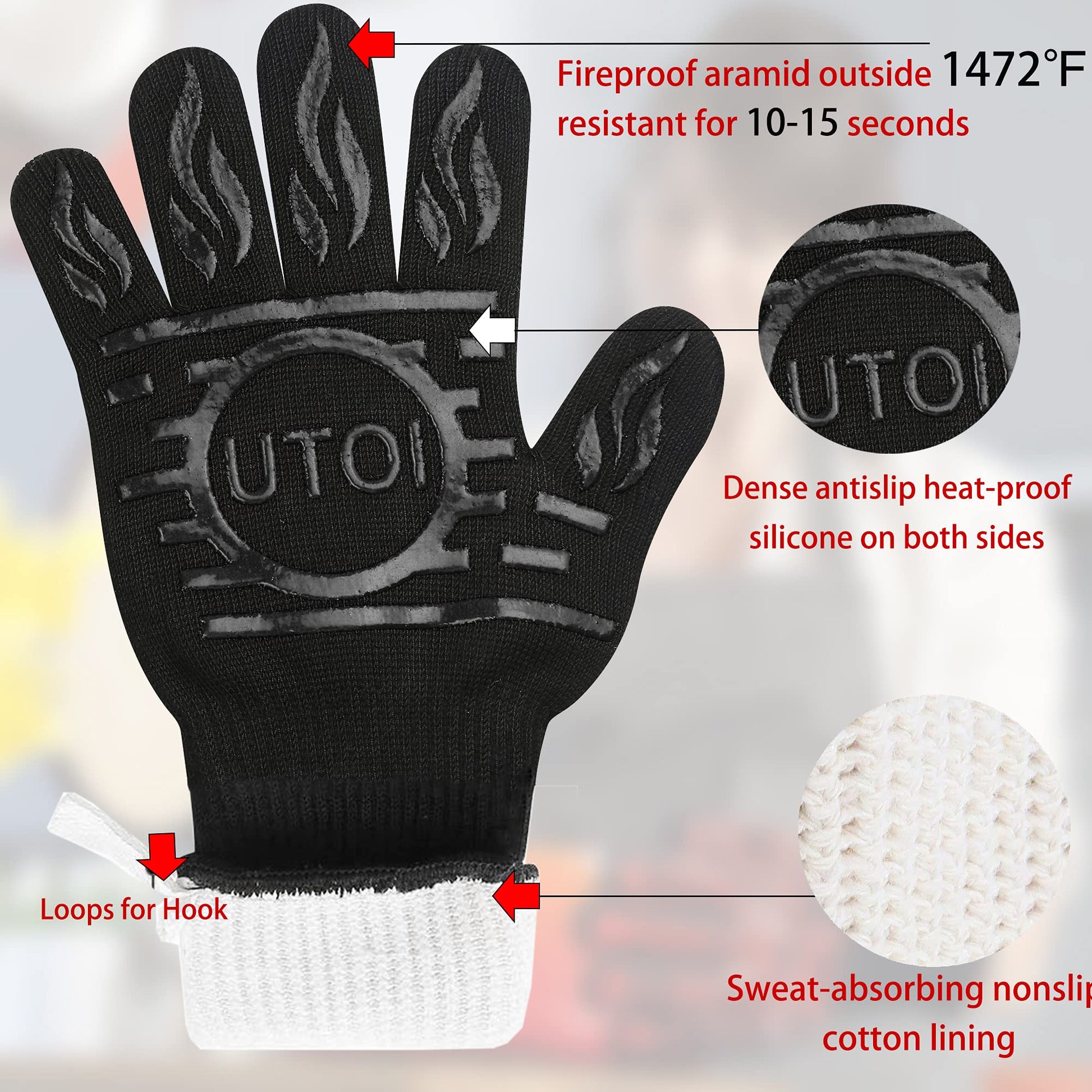 • High Heat Resistant: UTOI Heat and flame resistant gloves protect your hands against high temperature when cooking, grilling, baking, handling hot meat, and working around hot ovens, smokers, fireplaces, campfires, and wood stoves