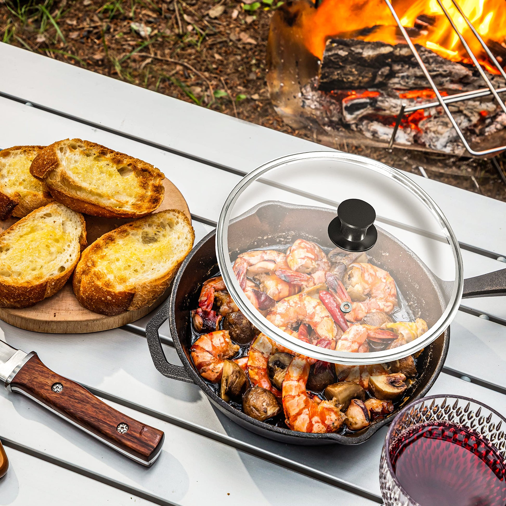 • Versatile Cooking: Our cast iron cookware is suitable for use on stovetops, ovens, grills, and even campfires, offering unmatched versatility for indoor and outdoor cooking.