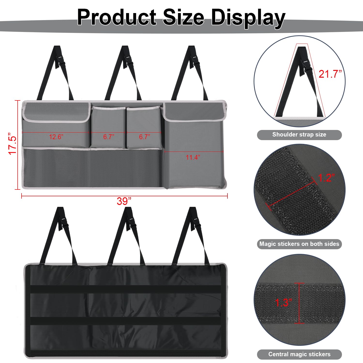 • PERFECT SIZE AND GOOD GIFT: The size is 39.3 inches x 17.7 inches, provides enough storage space, and comes with a variety of pockets of different sizes, which can meet your different storage needs,can be folded when not in use.This kind of car trunk organization is suitable for 90% of car types.This is also a gift for family and friends.