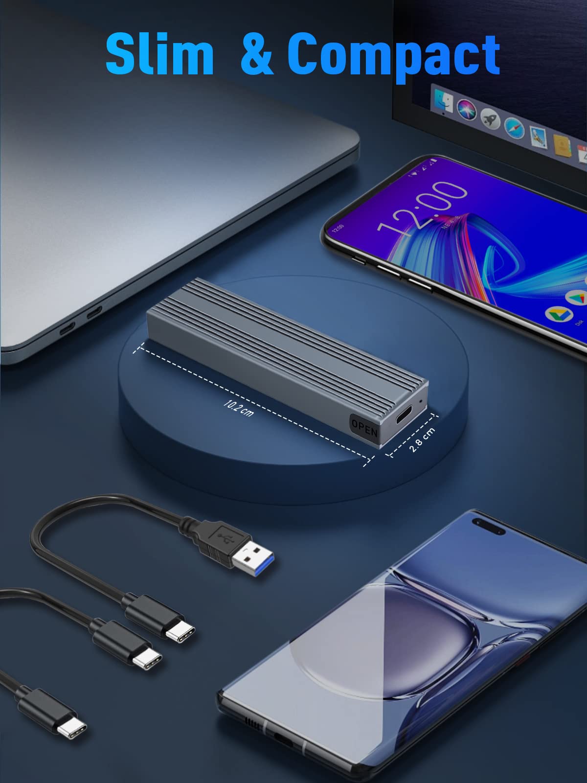 • 【Easy to Carry】Our nvme m.2 enclosure is Small and slim design makes it easy to carry in a bag. The device interface is currently the most popular Type-C. Come with 1*0.5M USB A to USB C cable and 1*0.5M USB C to USB C cable. Easy to use, no additional tools required, just open the lid, insert the hard drive and secure it. Please refer to the accompanying English instructions for specific steps.