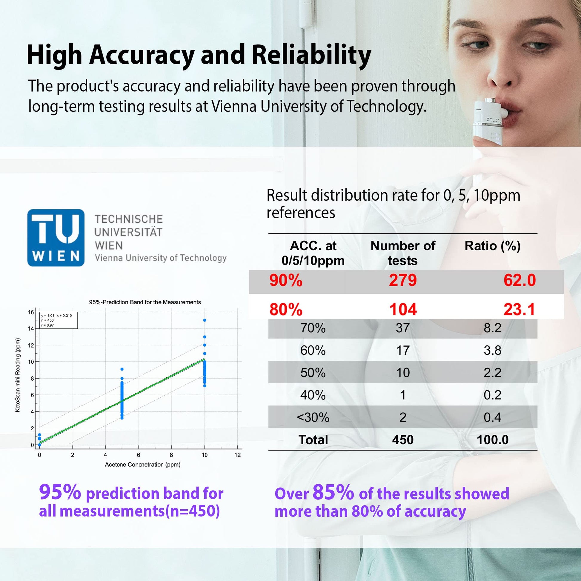 • [MADE IN KOREA] Ketoscan mini is a portable breath acetone analyzer that measures the ketone level and calculates body fat burning rate in your exhaled breath.
