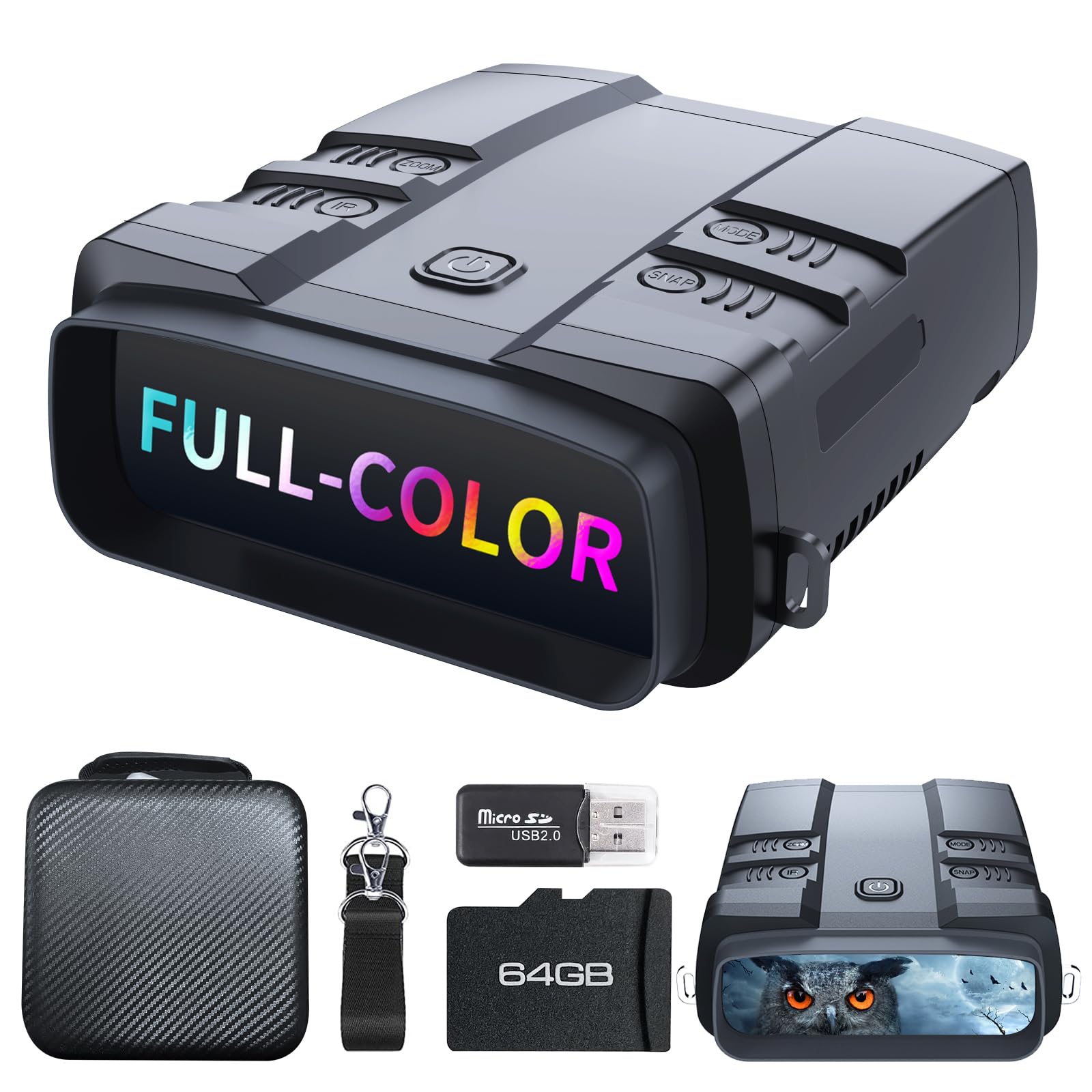 • Full-Color Low-light Imaging Technology & Powerful IR: The full-color night vision binoculars adopt the latest SONY imaging technology, which lets you observe and capture your surroundings in vibrant, vivid colors even in low light. The powerful IR Illuminator offers a focusable beam(Unique), high power, and 7-level IR adjustment. A Focusable Beam helps achieve the best illumination of an object in specific observation conditions. This boosts clarity and image quality, with 2x observation distance compared to others;