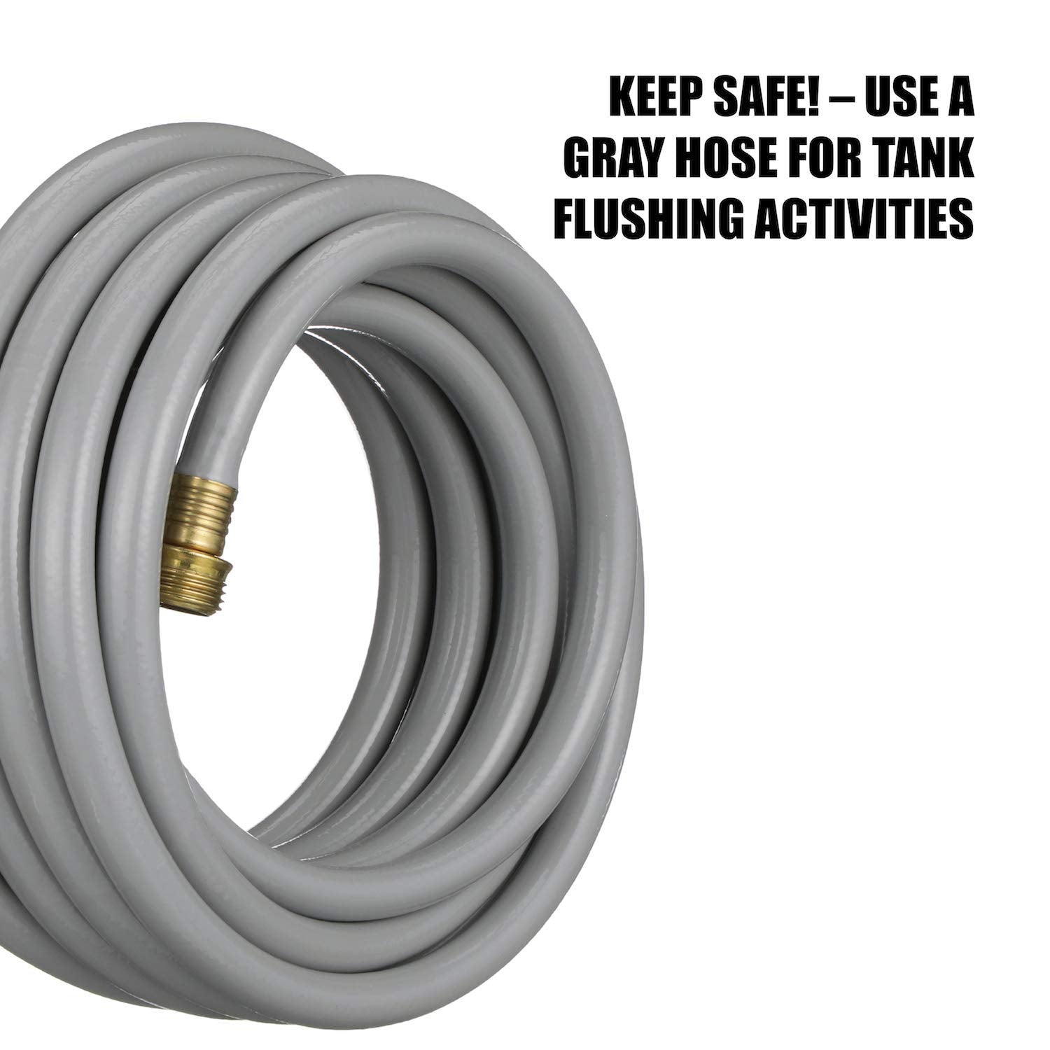• RV NON-DRINKING WATER HOSE: This gray hose is designed for non-drinking water usage including flushing devices that clean waste tanks