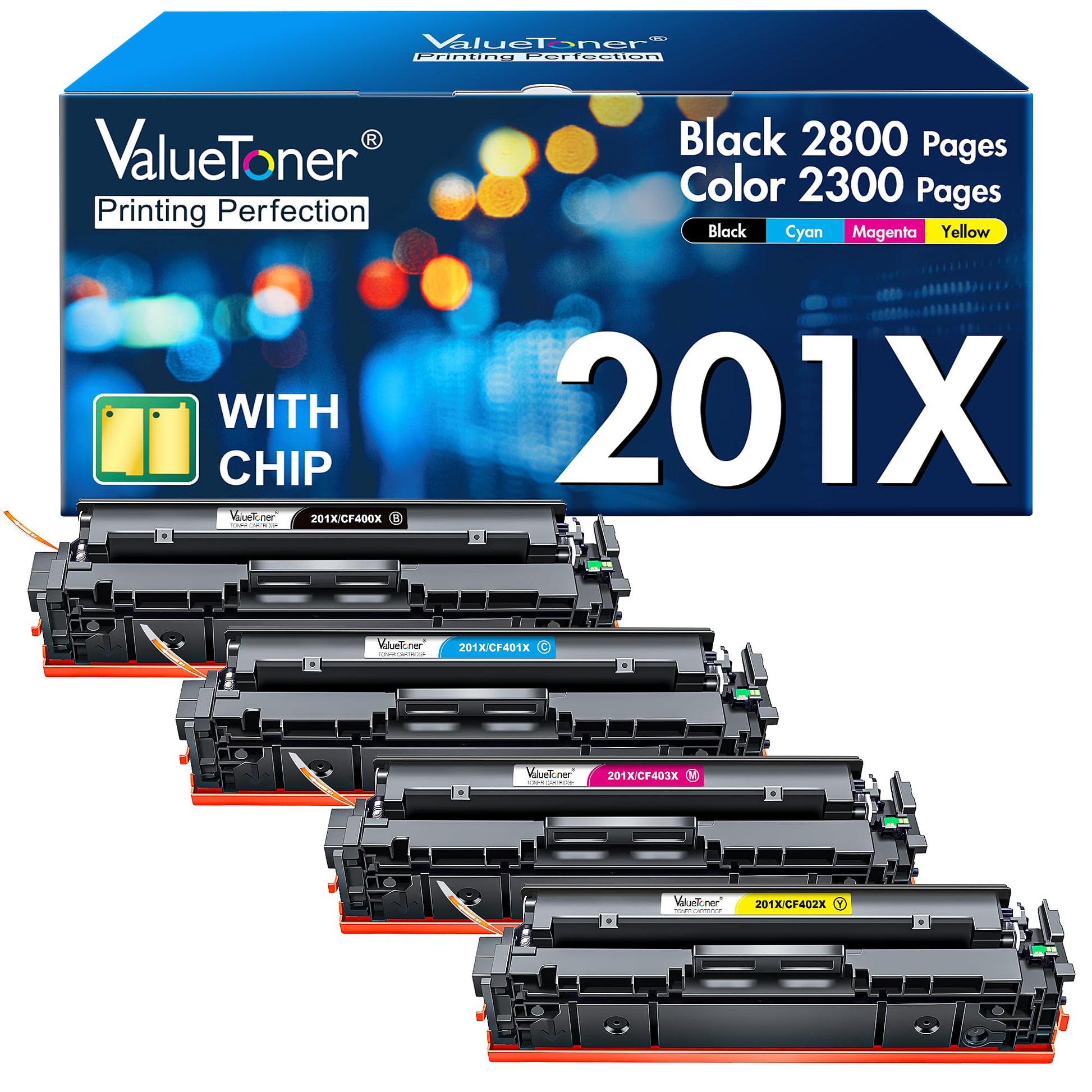• Contents: Valuetoner 201X compatible for hp 201x toner cartridges 4 pack high yield for HP 201A 201X Black/Cyan/Yellow/Magenta