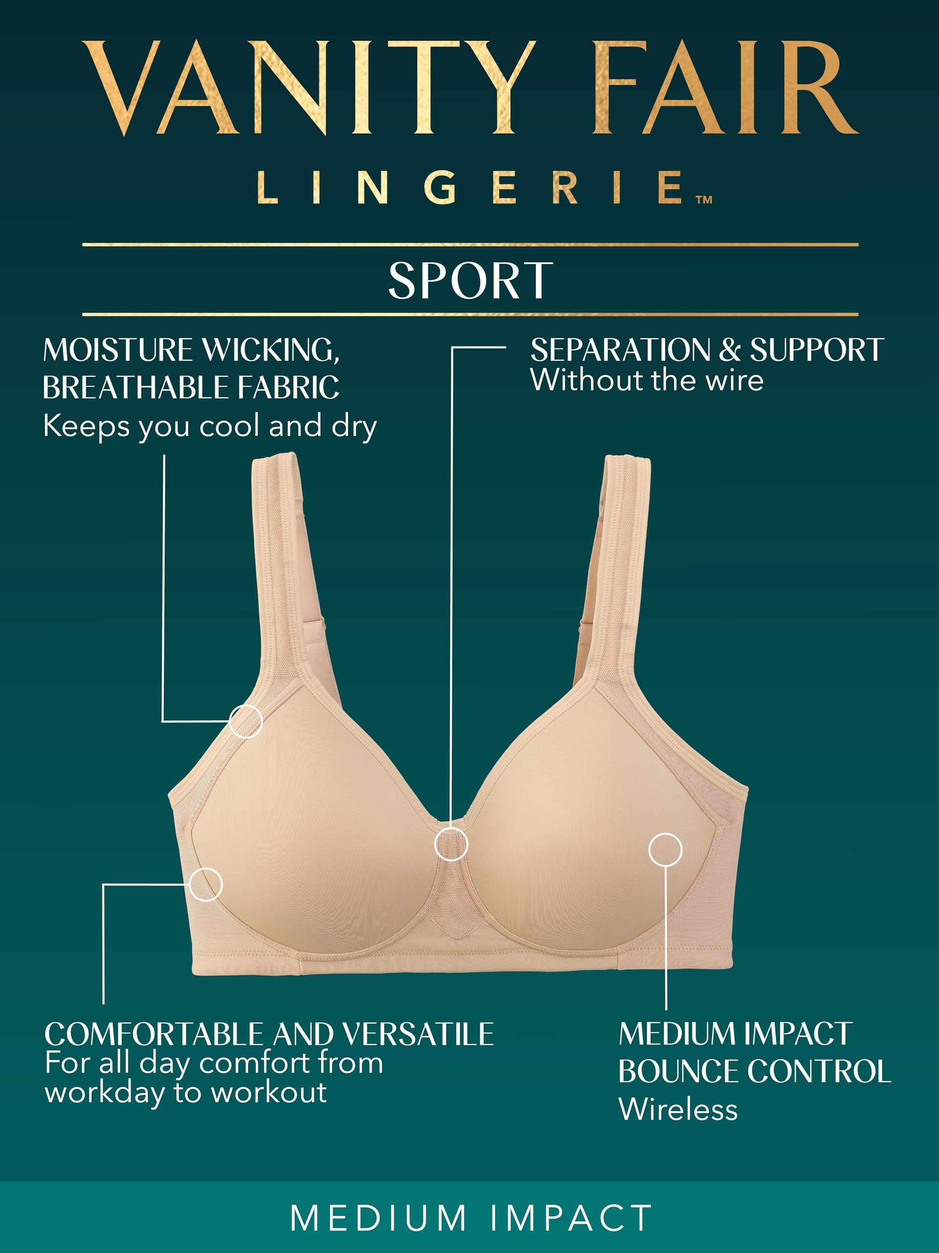 • Vanity Fair Style 71500, wirefree bra provides medium impact bounce control