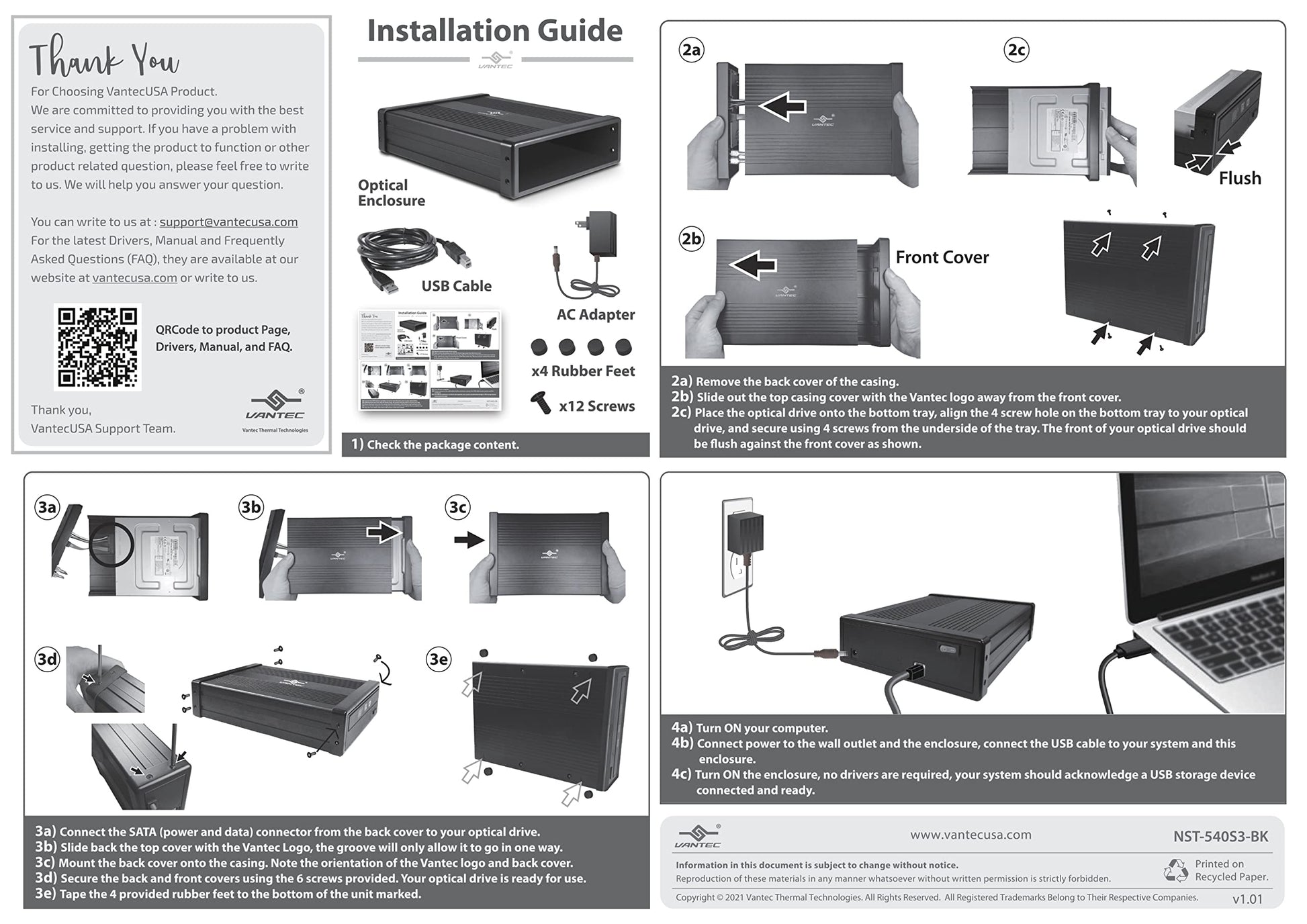 Details: NexStar DX2 is the second generation of the popular DX Optical Enclosure. Like DX, this DX2 is designed to be solidly built enclosure to house a 5.25' Desktop Optical drive and convert into an external enclosure. Your internal 5.25” optical drive now becomes a portable USB 3.0 enclosure that fits and moves with your desktops or laptops. This enclosure supports faster read/write operation requires of the optical drive like Blu-Ray drive, CD and DVD. The aluminum case keeps the device cool and operating at optimum conditions. This second generation NexStar DX2 external 5.25' enclosure is the smart way to optimize and share your optical drive with all your system.