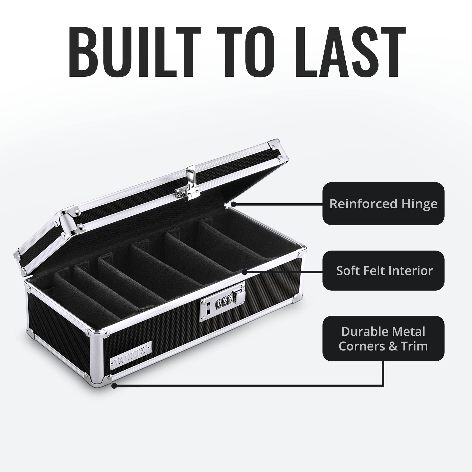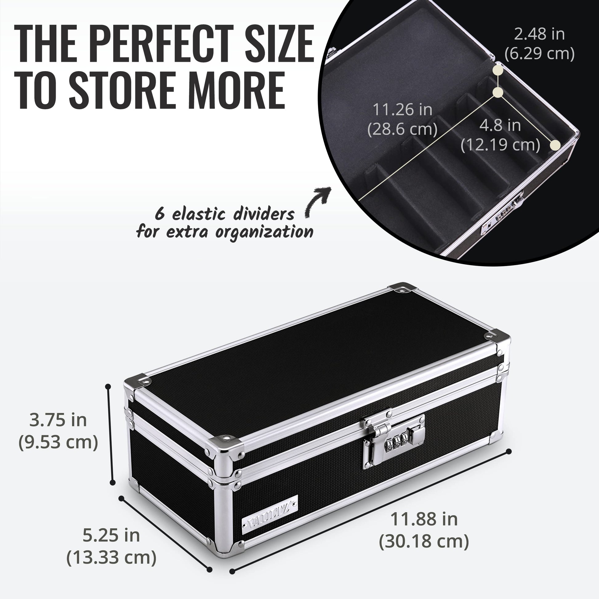 Details: Store, organize and protect your important medical supplies with the Vaultz Locking Medicine Storage Box. Chrome-steel corners and aluminum trim deliver strength and durability while the combination lock provides key-less security. This box features internal elastic dividers to keep your medical supplies organized. 3.75 x 11.88 x 5.25 inches. Black. For the office, home or school, there is a Vaultz product for you. If it's important to you, Lock It Up!