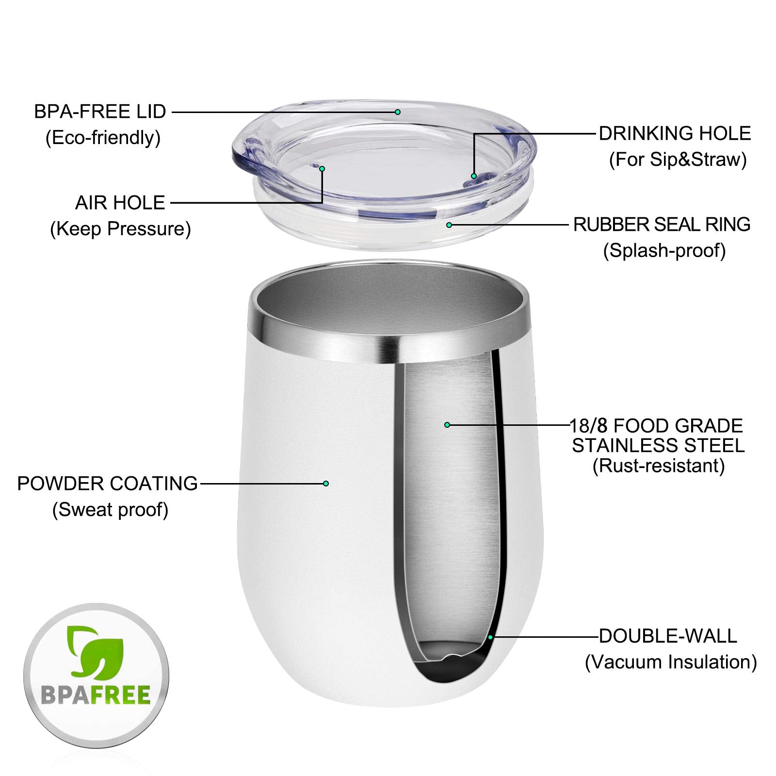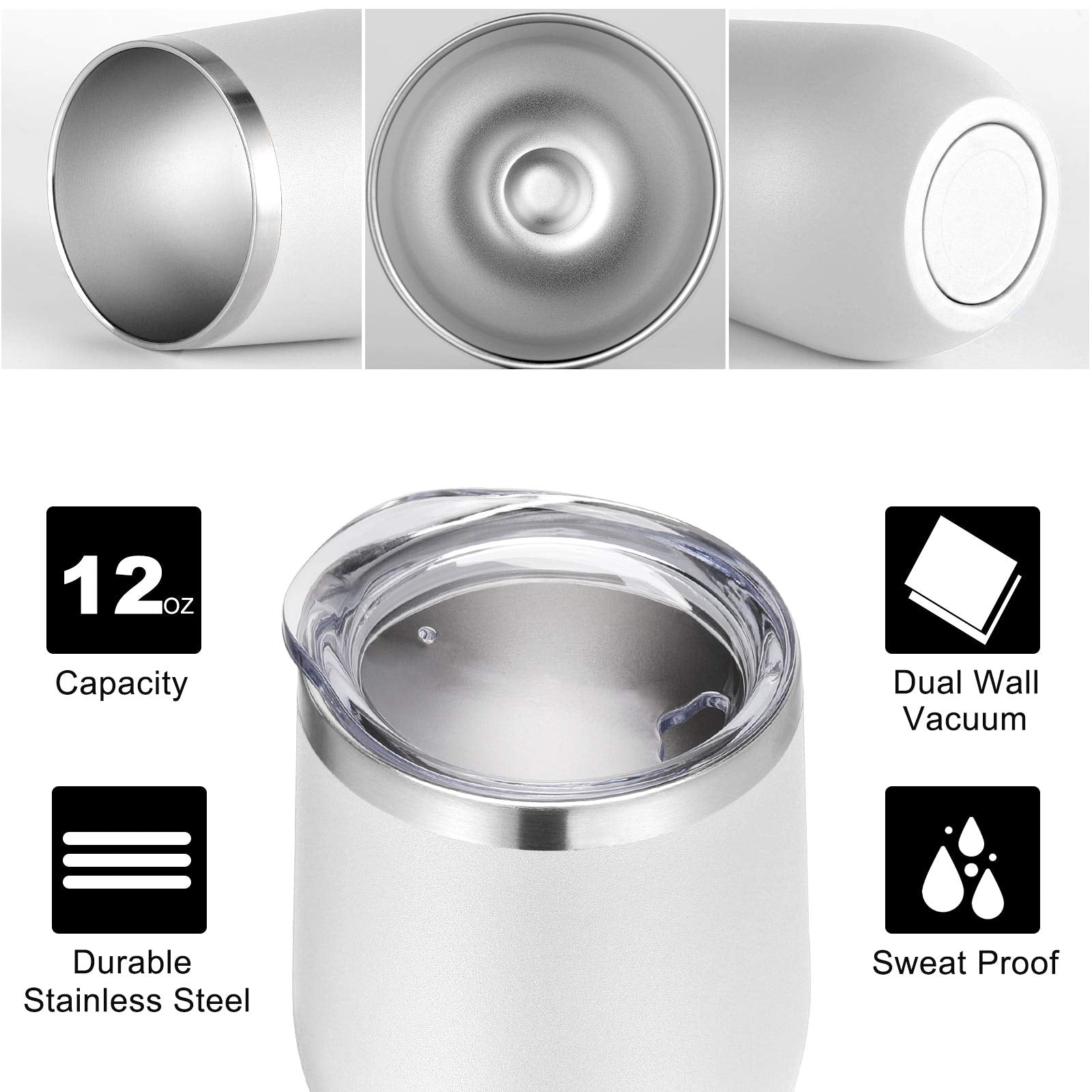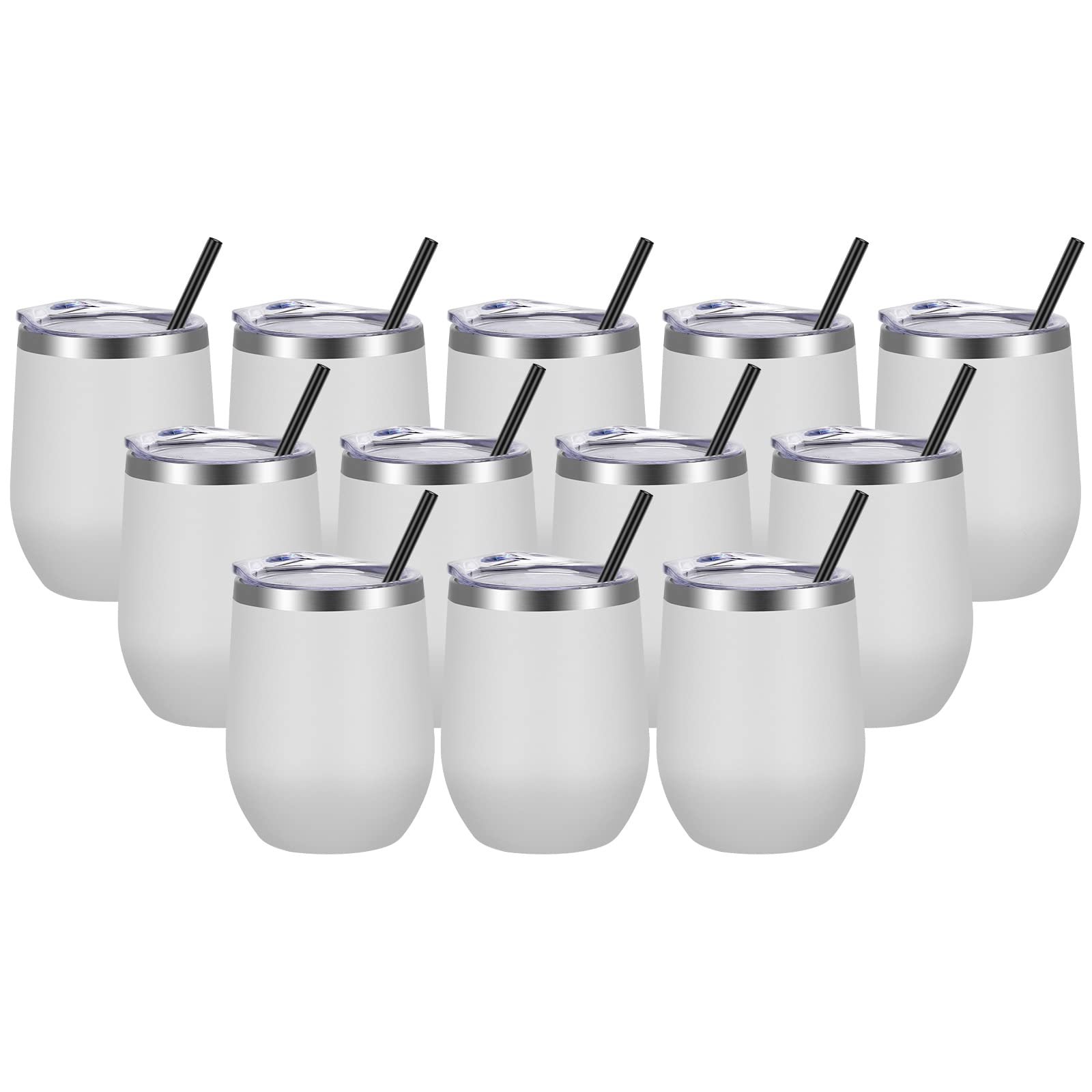 VEGOND Wine Tumblers Bulk 12 Pack, 12oz Stainless Steel Stemless Wine Glass with Lids and Straws, Double Wall Vacuum Insulated Tumbler Cup, Coffee Mug for Cold Hot Drinks