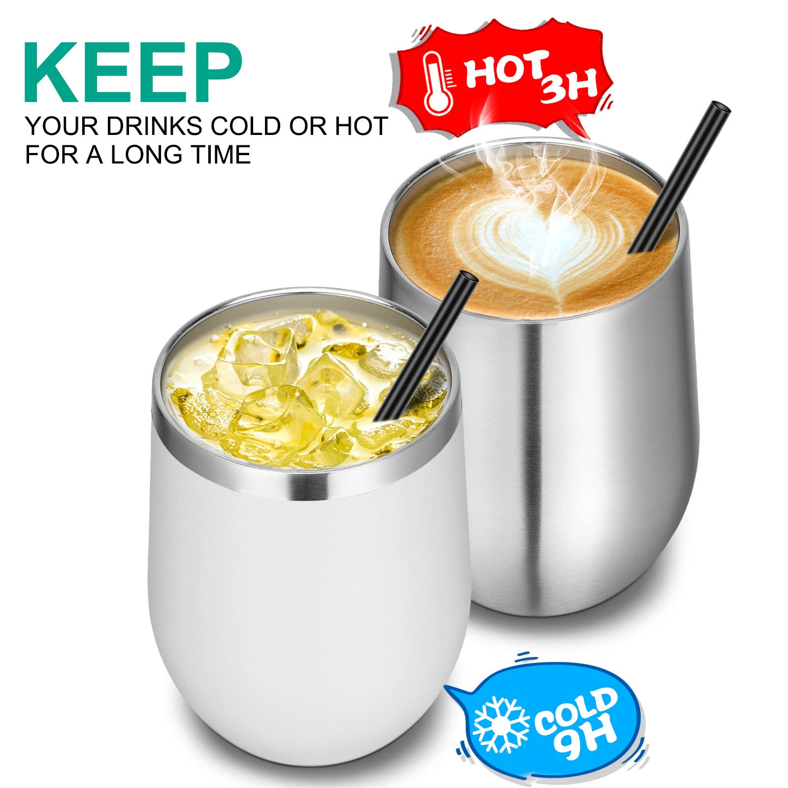 • Fashionable and Reusable: The 12oz wine tumbler bulk are made of 18/8 food grade stainless steel with non-slip frosted coating,no metallic taste. It has an eye-catching and fashionable appearance and is more solid and safer than other ordinary glasses. It is equipped with a BPA-free lid And the reusable plastic straw can be selectively used for more drinks