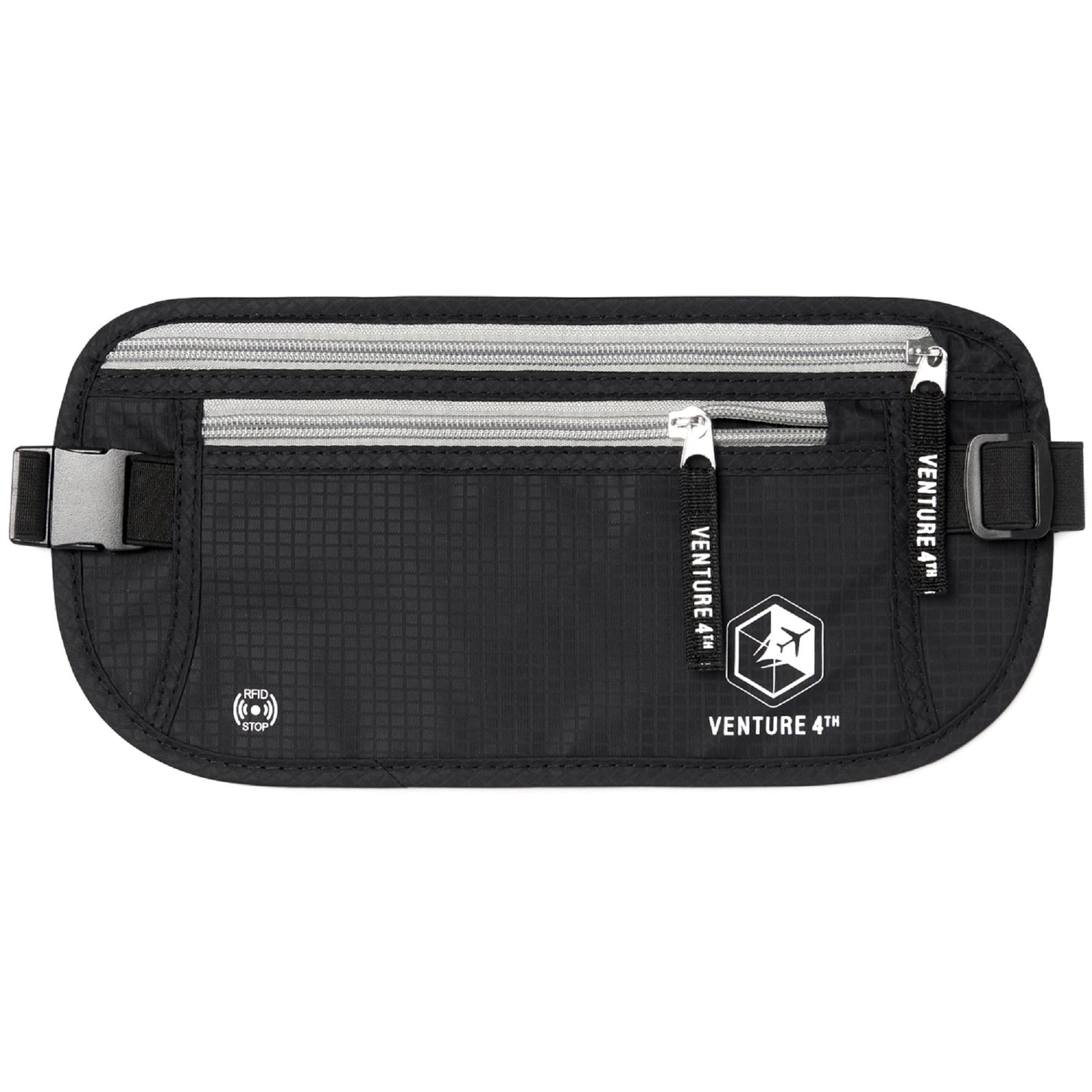 VENTURE 4TH Travel Money Belt - Slim Passport Holder RFID Blocking Travel Pouch to Protect Cash, Credit Cards and Travel Documents (Black)