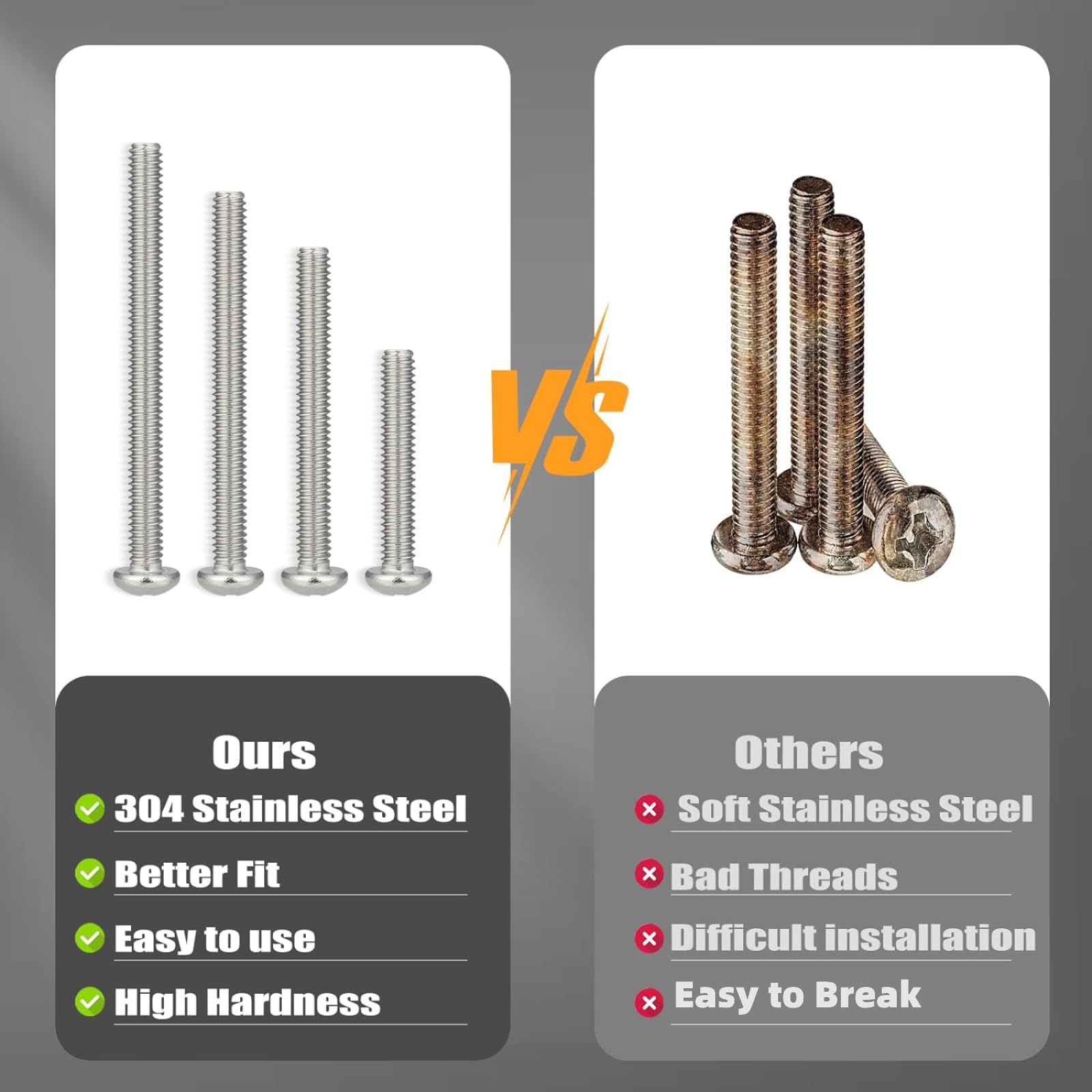 • Wide Application:The stainless steel bolts and nuts kit is widely use in many occasions,such as door handles, faucet, appliances, bicycle, furniture, socket,wall plate ,car, etc, and other repairing of indoor or outdoor.
