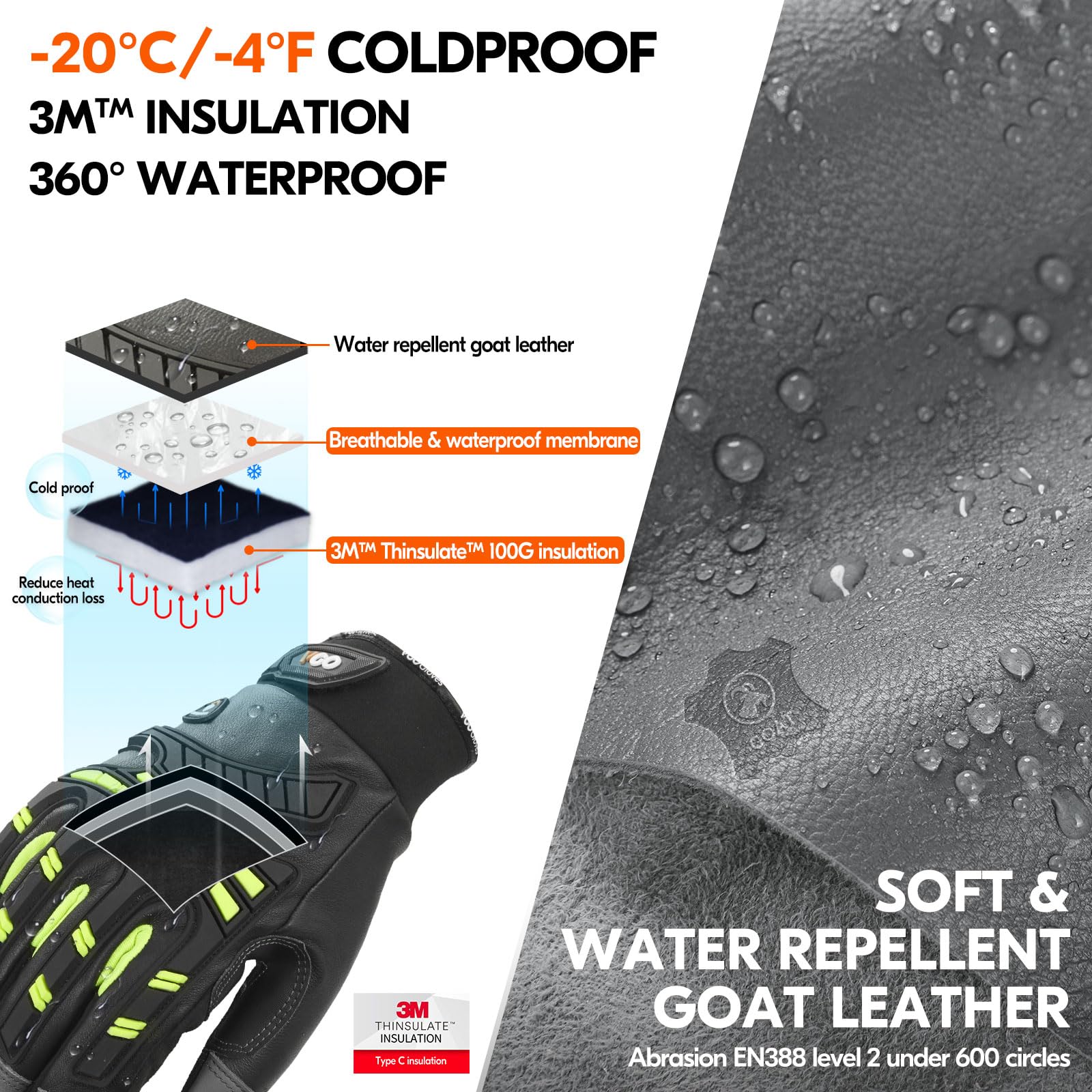 • 360° BREATHABLE & WATERPROOF, -20℃/-4°F COLDPROOF WITH 5-LAYER STRUCTURE - The waterproof but breathable TPU lining along with the 3M Thinsulate insulation C100 lining to ensure our gloves for stay-dry comfort and traps warm air to keep your hands warm