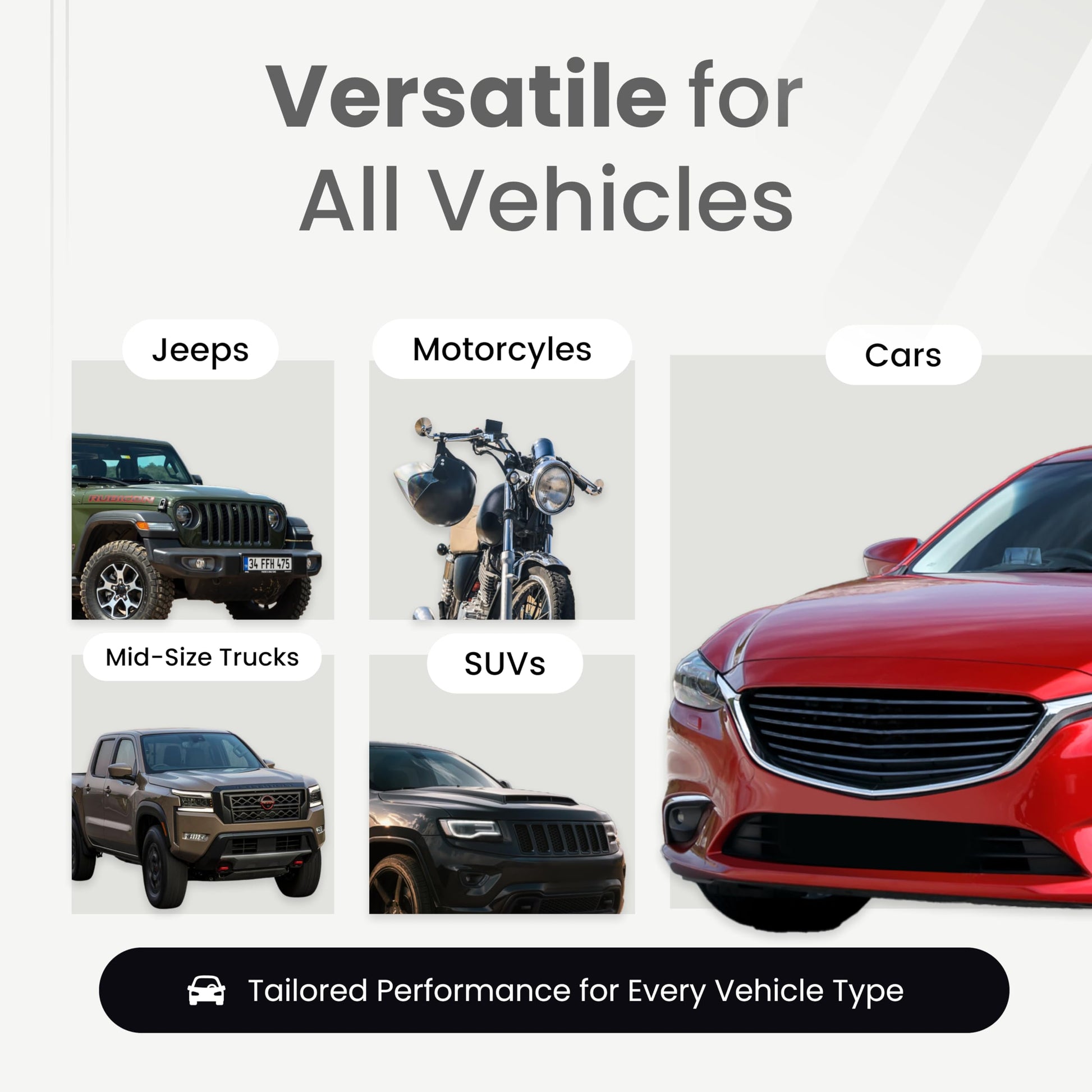 Compatible with All Vehicles From cars and trucks, to motorcycles and side-by-sides, this small air compressor is portable and powerful. Filling a 205/65/16 tire in 38 seconds or less, the 85P gets you back on the road in minutes, no matter what rig you drive.