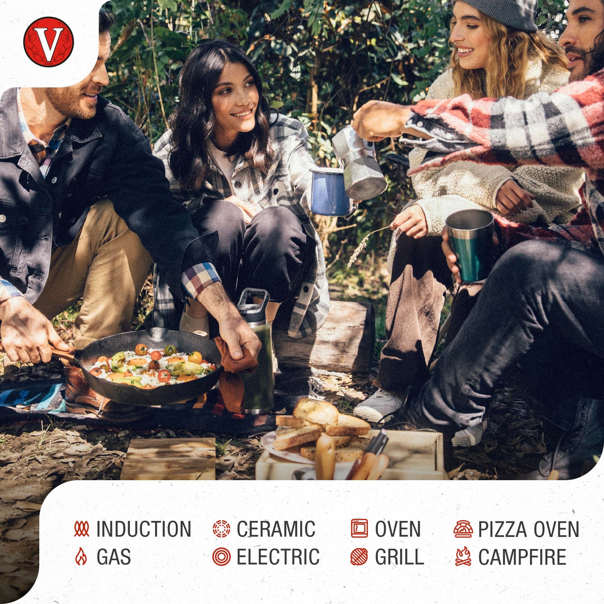 VERSATILE COOKING PAN: This cast iron skillet is made with natural materials and can be used on the stove, on an induction cooktop, in the oven, over a campfire, or on a grill up to 1,000°F. Your food will stay warm and be infused with natural iron.