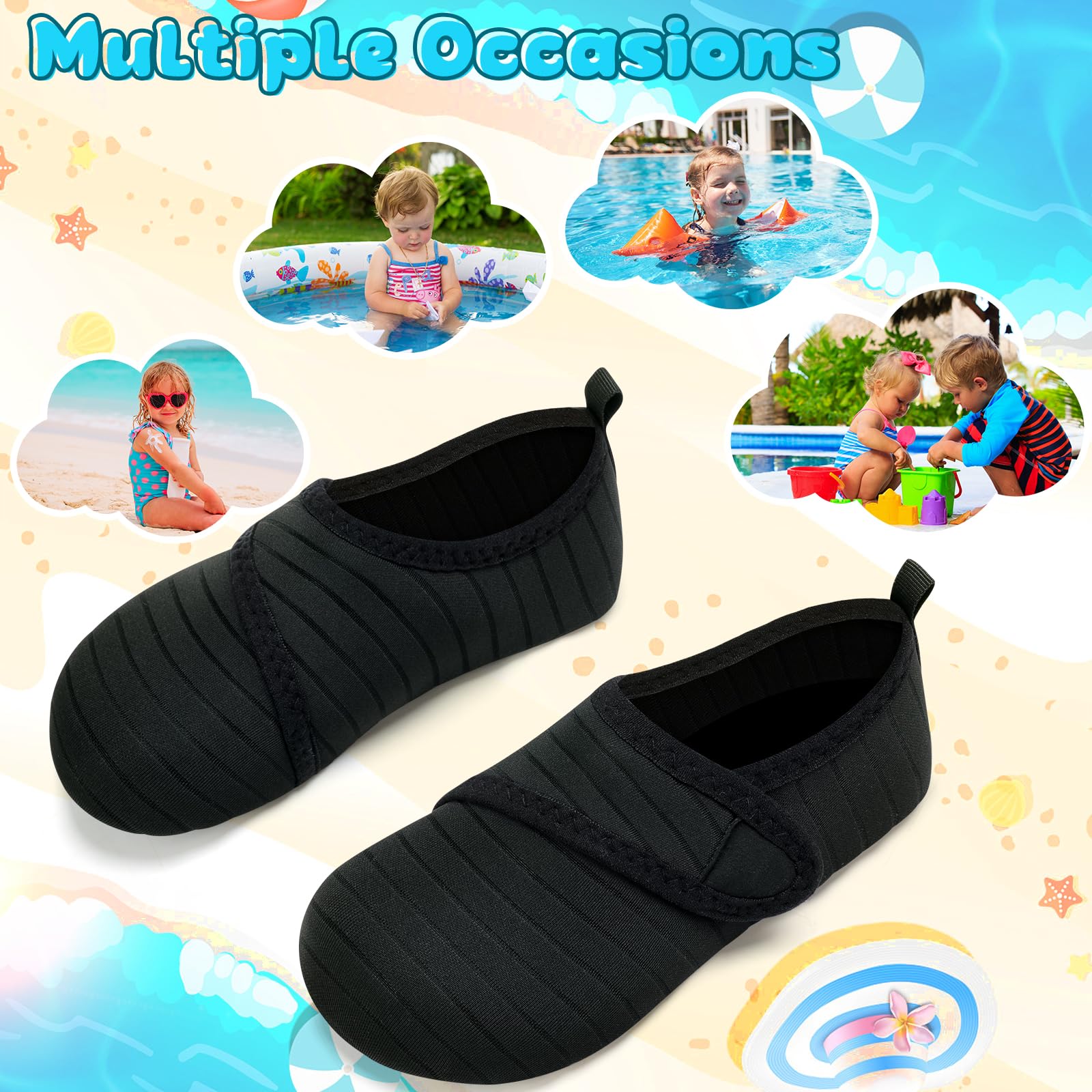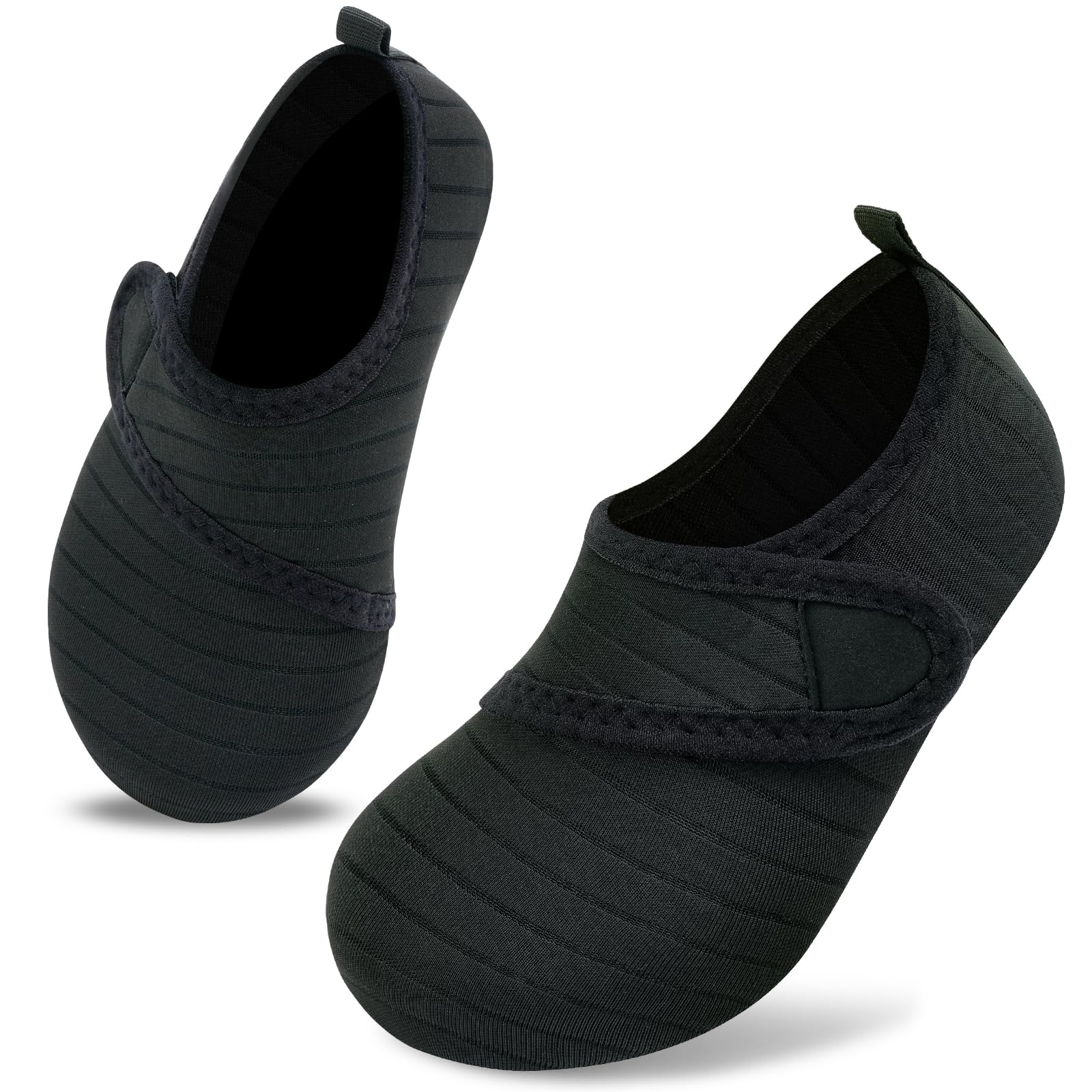 VIFUUR Kids Water Shoes Boys Girls Barefoot Water Sports Socks Hook&Loop Beach Shoes Quick Dry Aqua Socks Swim Walking Outdoor Sports for Toddler Black-30/31