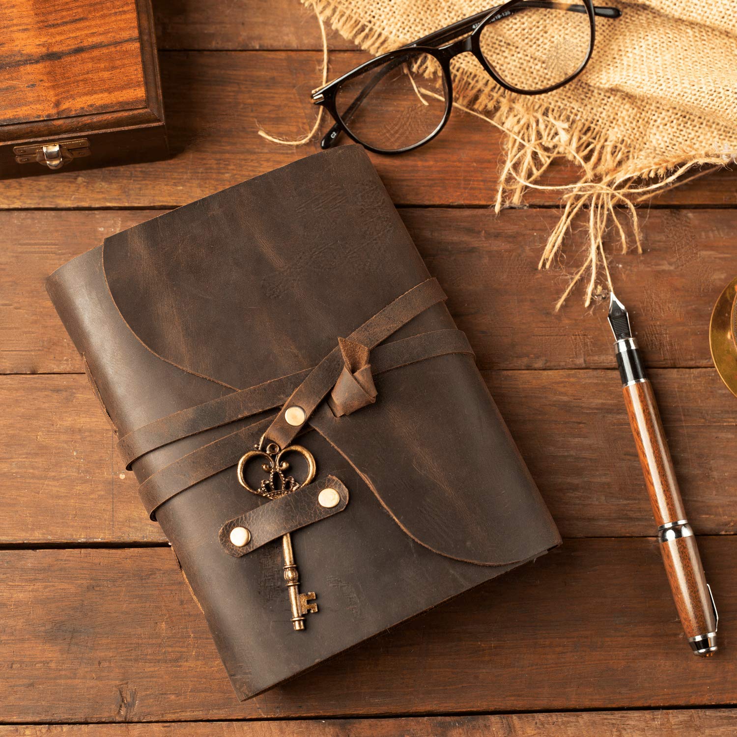 • Sturdy Binding with Wraparound Closure – Strong hand-stitched binding keeps pages secure, while the leather wraparound with decorative key provides extra protection and classic style.