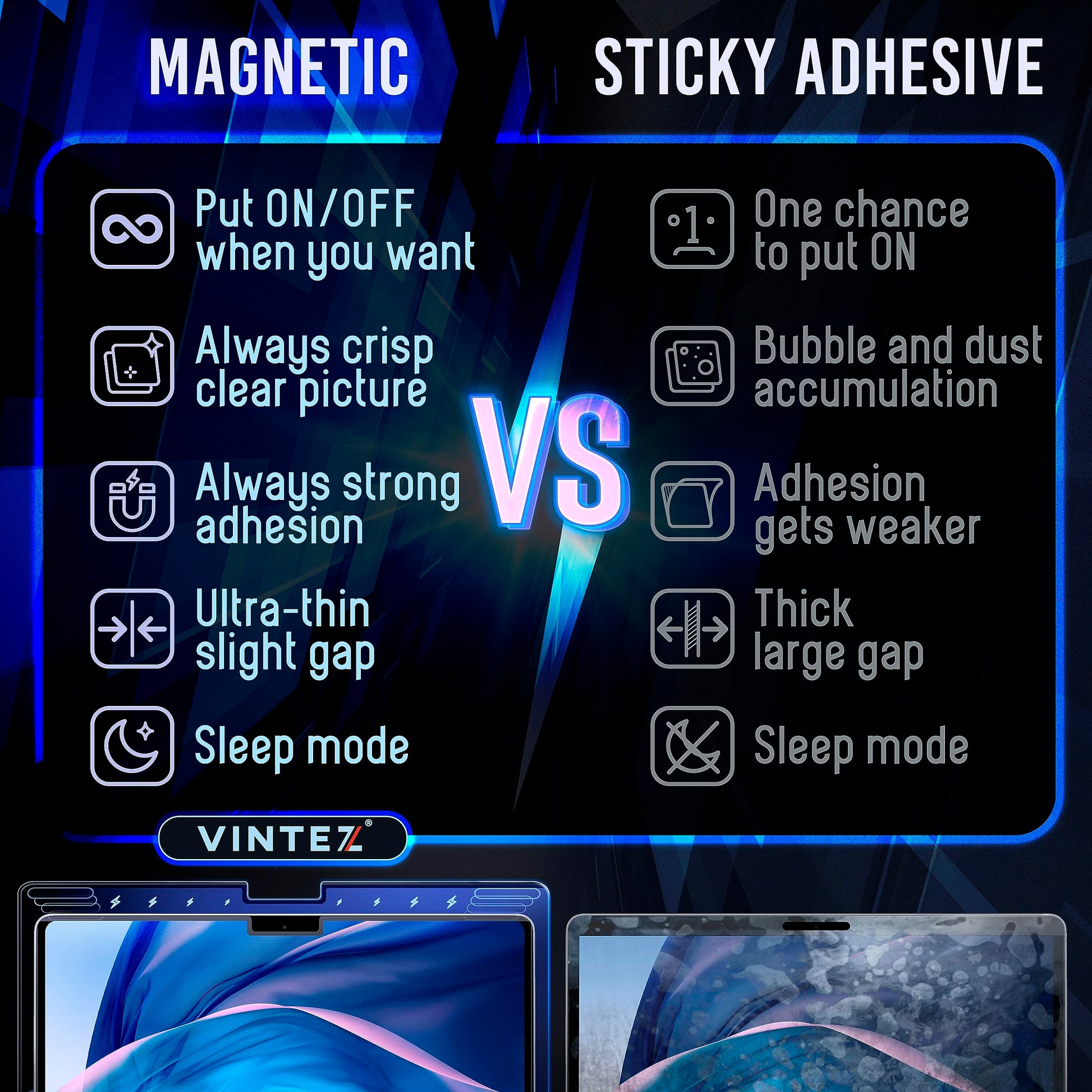 VINTEZ Magnetic Blue Light Screen Protector Compatible With MacBook Air 13.6" 2022, 2023, 2024, M2, M3 Anti Blue Light Blocking Filter for Laptop