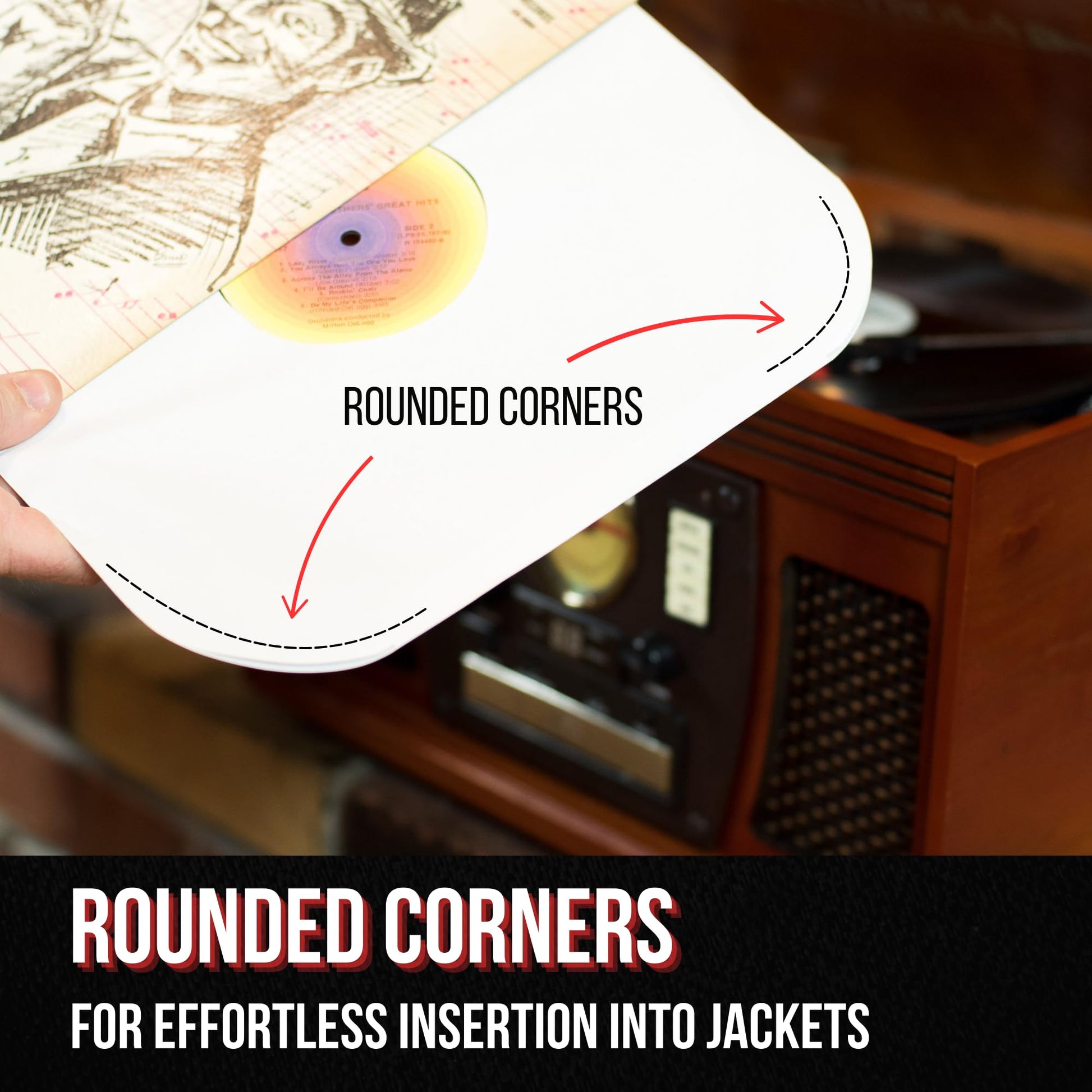 • ROUNDED CORNERS - make insertion and removal easy by preventing bunching and snagging inside of the album jackets.