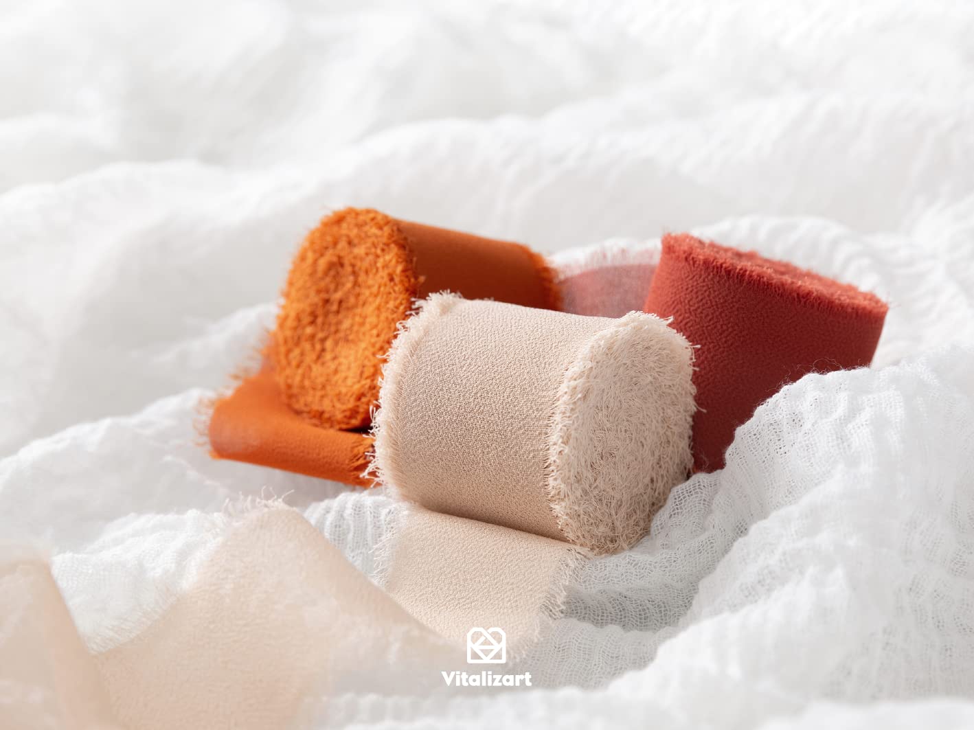 Vitalizart Fall Handmade Chiffon Silk Ribbon Fringe 1.5" x 21 Yd Terracotta Frayed Edges Ribbons for Wedding Invitations Bridal Bouquets Gifts Wrapping Crafts Holiday Party Decorations