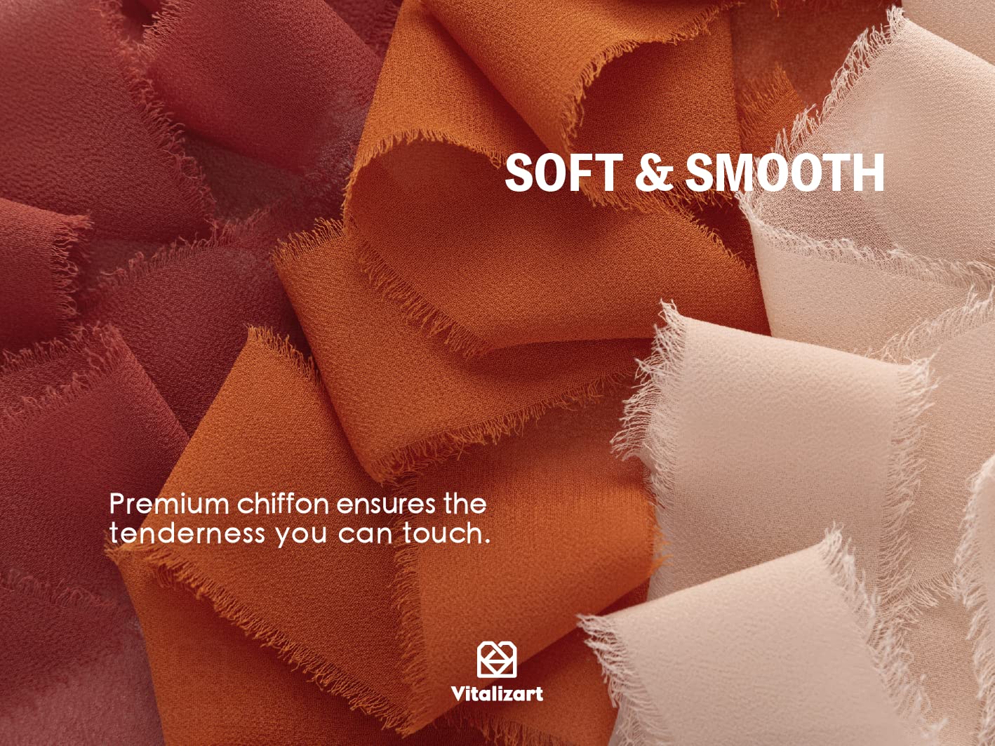 • Premium silk-like chiffon material. Very sheer, soft and easy to cut.