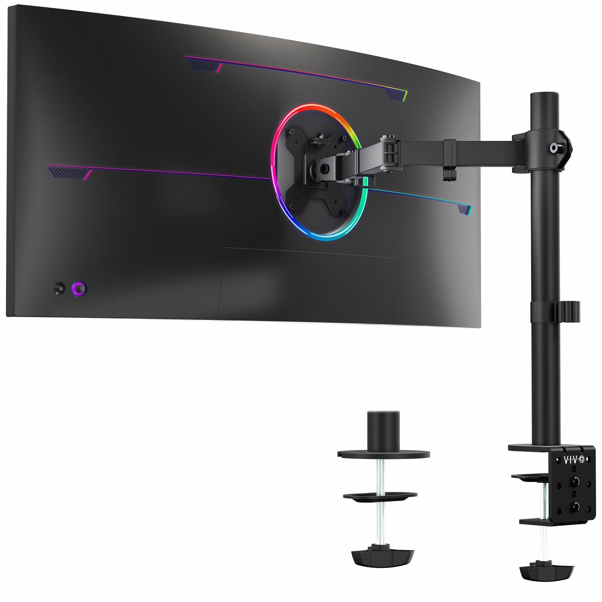VIVO Single 13 to 38 inch Ultrawide Monitor Arm Desk Mount, Regular Screens up to 32 inches, 22 lbs capacity, Fully Adjustable Stand with C-Clamp and Grommet Base, Black, STAND-V001