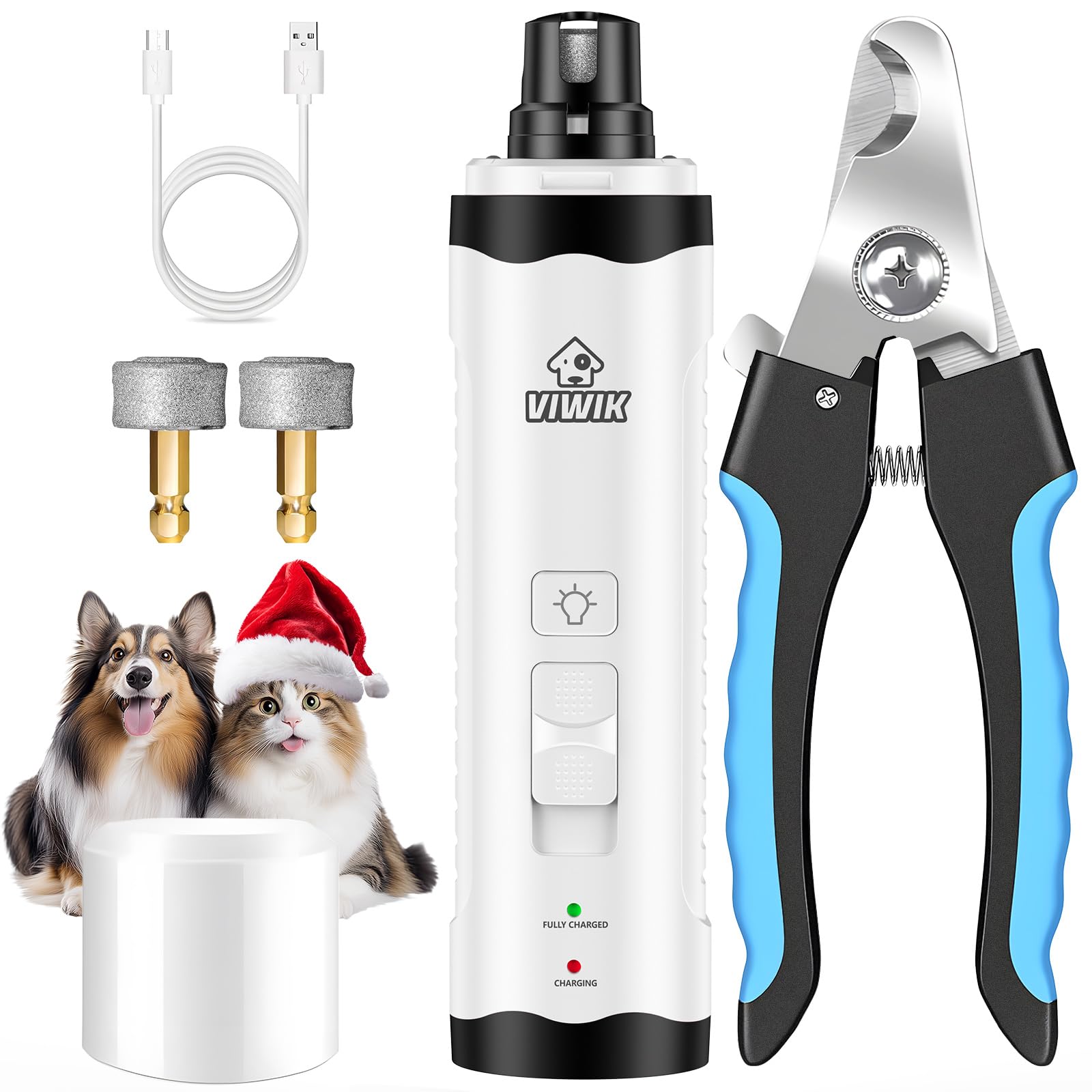 VIWIK Dog Nail Trimmers with Light, Cat Dog Nail Clippers, Dog Nail Grinder Quiet for Large Medium Small Dogs Paw & Cats Claw, Electric 2-Speed Pet Toenail Grooming Supplies, Gifts for Dog Lovers.