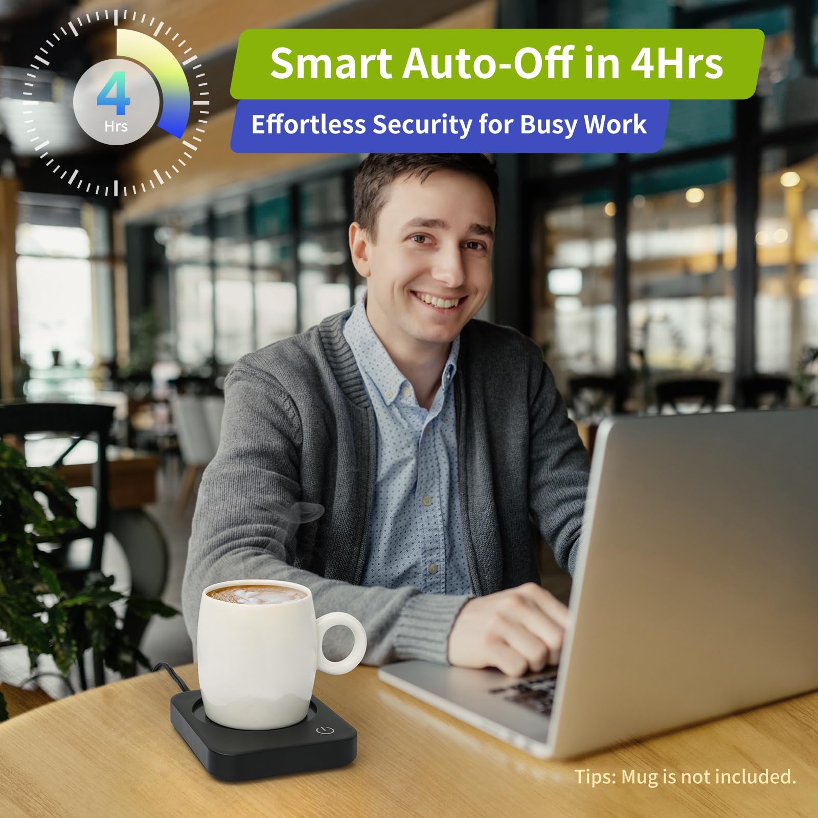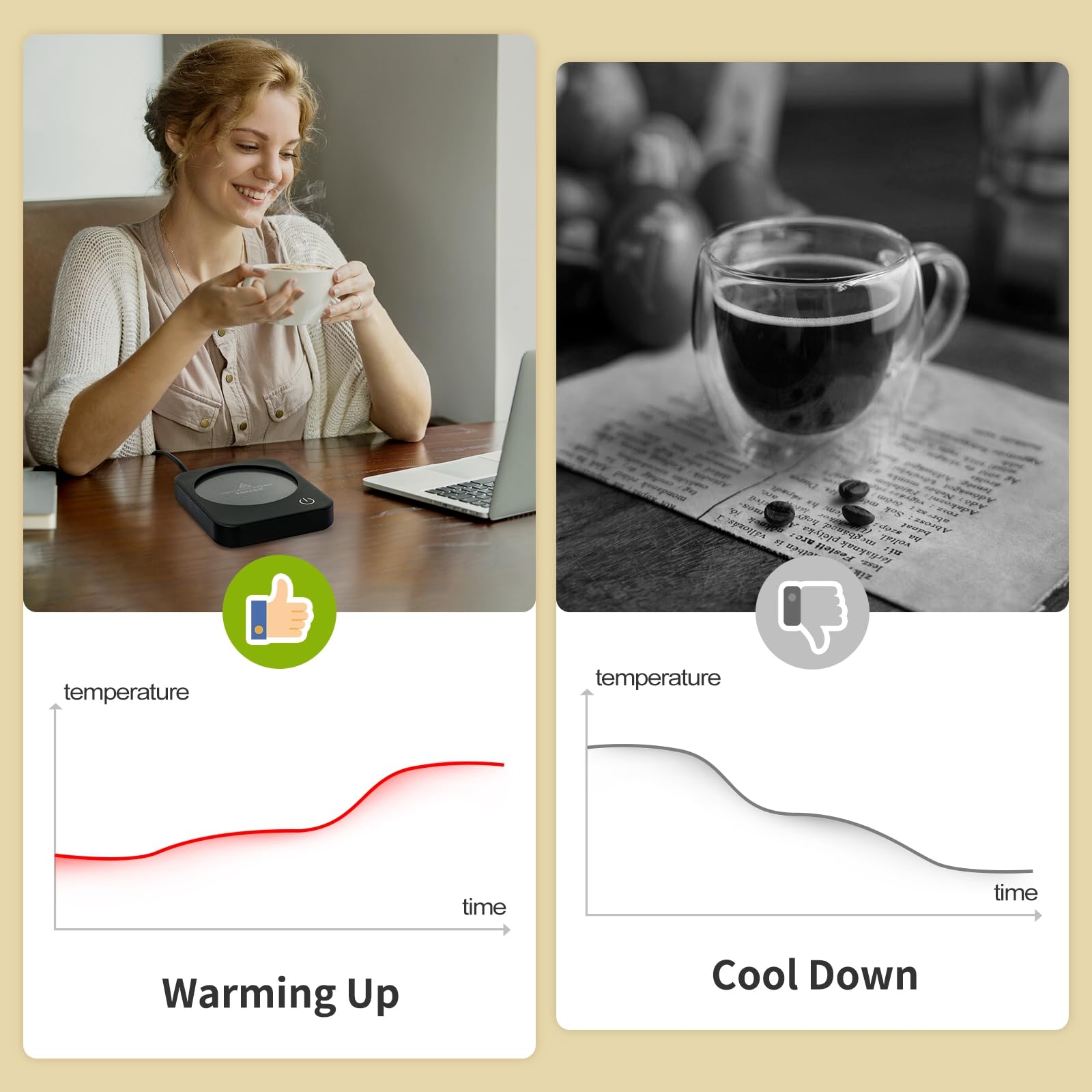 VOBAGA Coffee Mug Warmer for Desk with Auto Shut Off & 3-Temp Settings, Coffee Cup Warmer with Smart Safety Alert Home Office Accessory, Perfect for Coffee, Tea, Milk (No Mug)