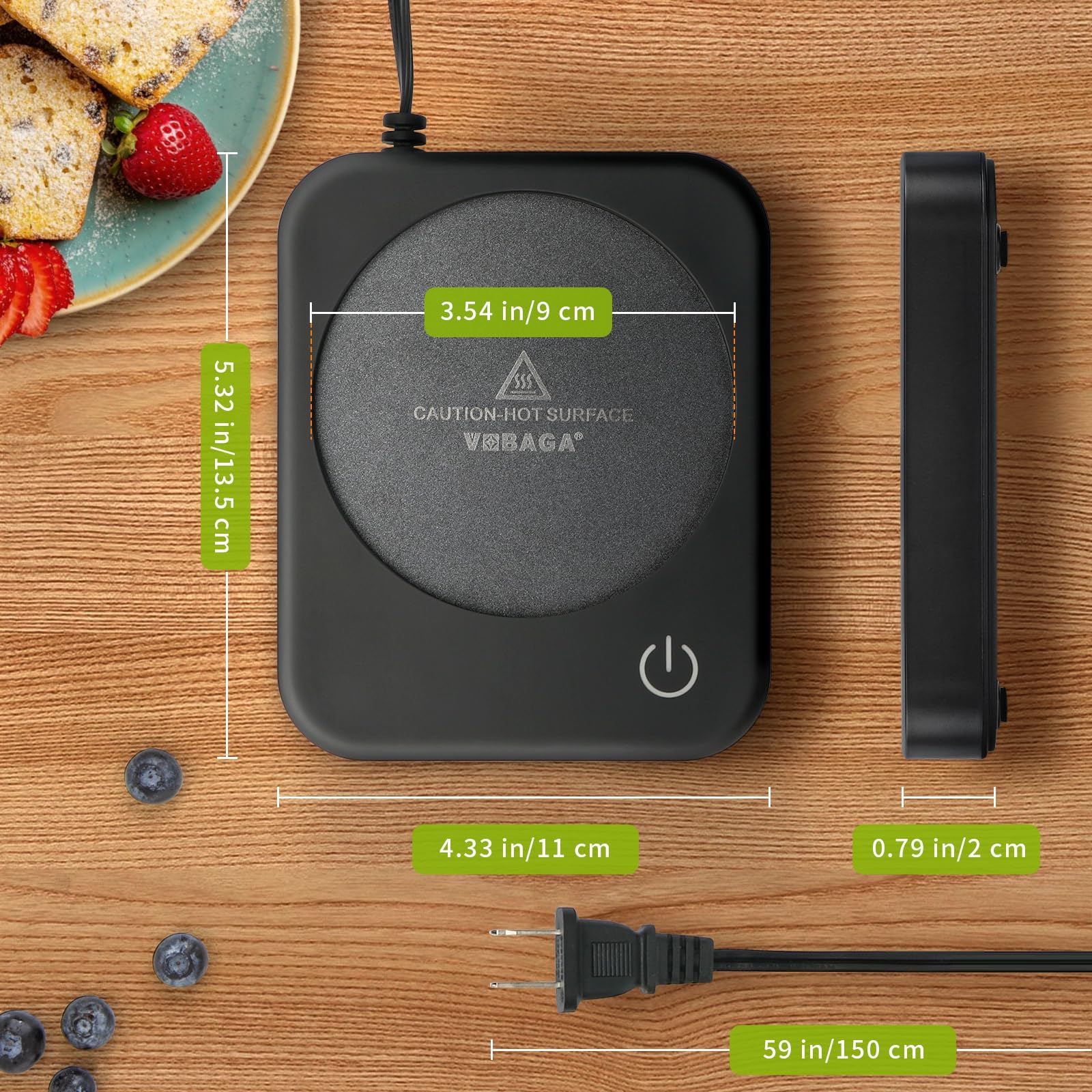 • Adjustable Three-Temperature Setting: VOBAGA coffee warmer will keep your coffee at a perfect drinking temperature. You can control the temperature by tapping the button, keeping your coffee or milk up to 104℉-131℉-149℉ (40℃-55℃-65℃). Changing temperature is just a tap on of your finger.