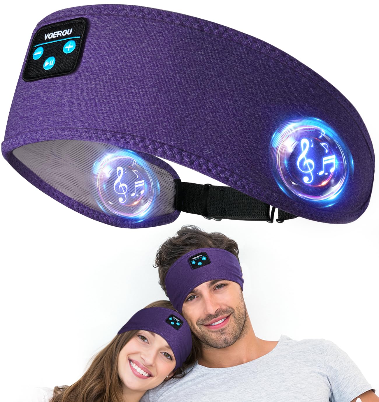 Voerou Sleep Headphones Bluetooth Headband - 10Hrs Adjustable Wireless Sports Sleeping Headphones with Hi Fi Sound, Tech Gifts for Men Women Side Sleepers Office Nap, Travel, Yoga, Workout, Meditation