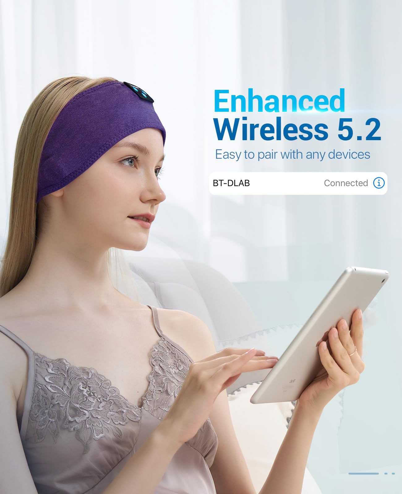 • [Immersive Audio Experience] Elevate your music listening with the advanced Bluetooth 5.2 technology and 40mm composite drivers in sleepphones. Immerse yourself in rich, well-balanced sound with deep bass, clear midranges, and crisp trebles. Whether you're into upbeat tracks or mellow tunes, experience exceptional clarity and detail across all music genres with this sleep headphones wireless bluetooth. With newly upgraded battery, it greatly prolongs the lifespan of Voerou Sleep Headphones