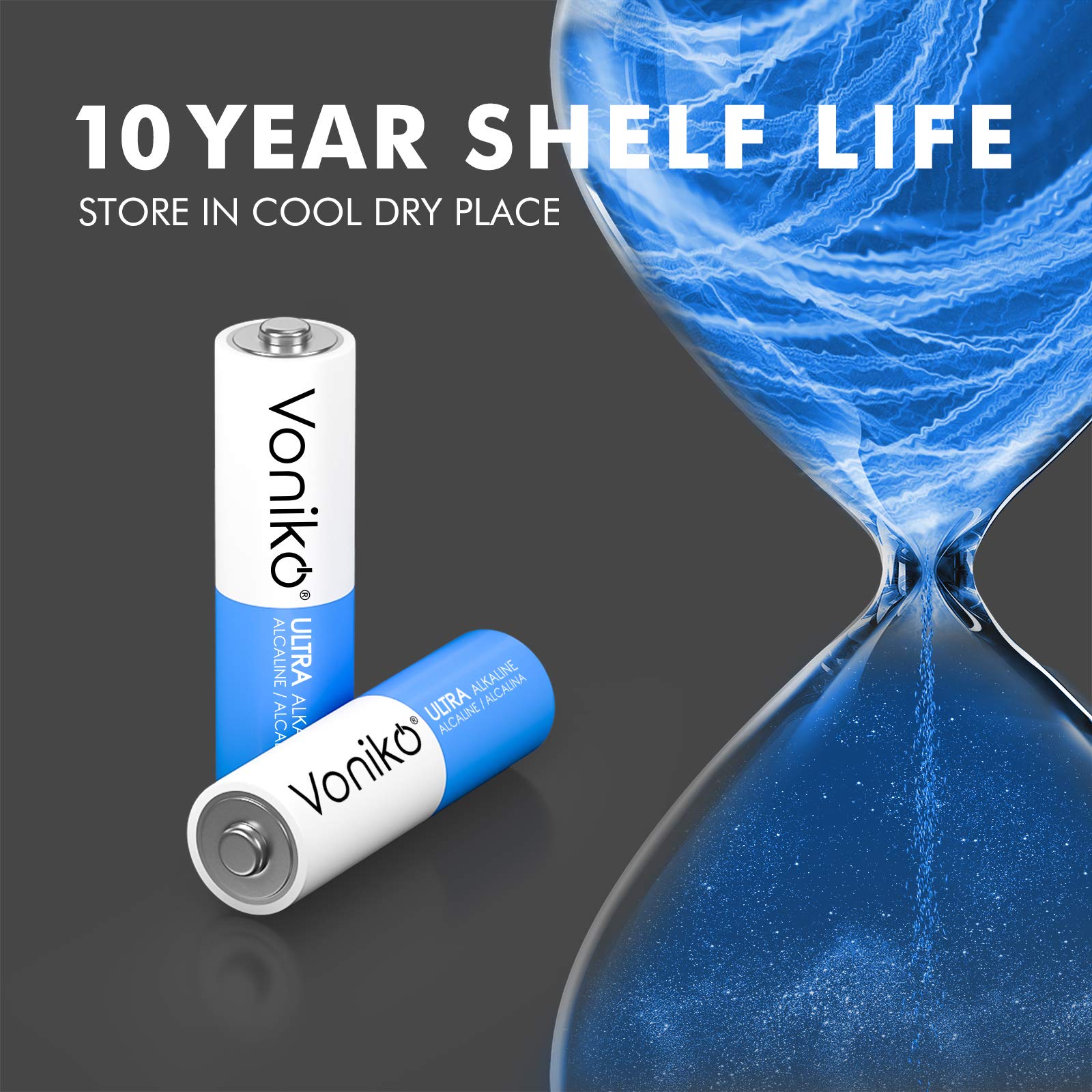 • Protection Comes First — We combine a double layer internal structure housed within a stainless steel cover so that Voniko's lr6 batteries are 100% leakproof. Avoid short circuits, mixing and matching old batteries with new ones.