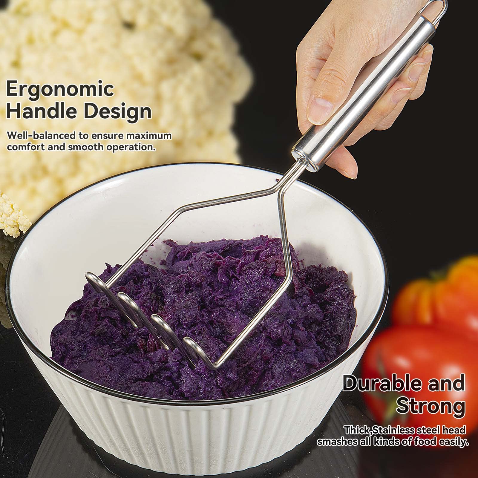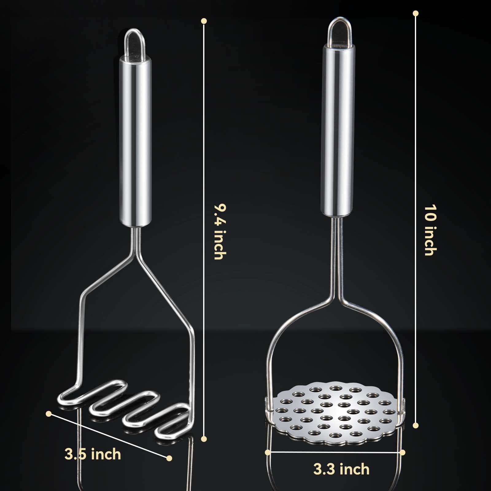 • Stainless Steel Potato Masher: Made of food-grade high-quality stainless steel, the thick twisty wire is sturdy and strong. Beautiful smooth edge design possesses higher durability and comfort and is not easy to rust.