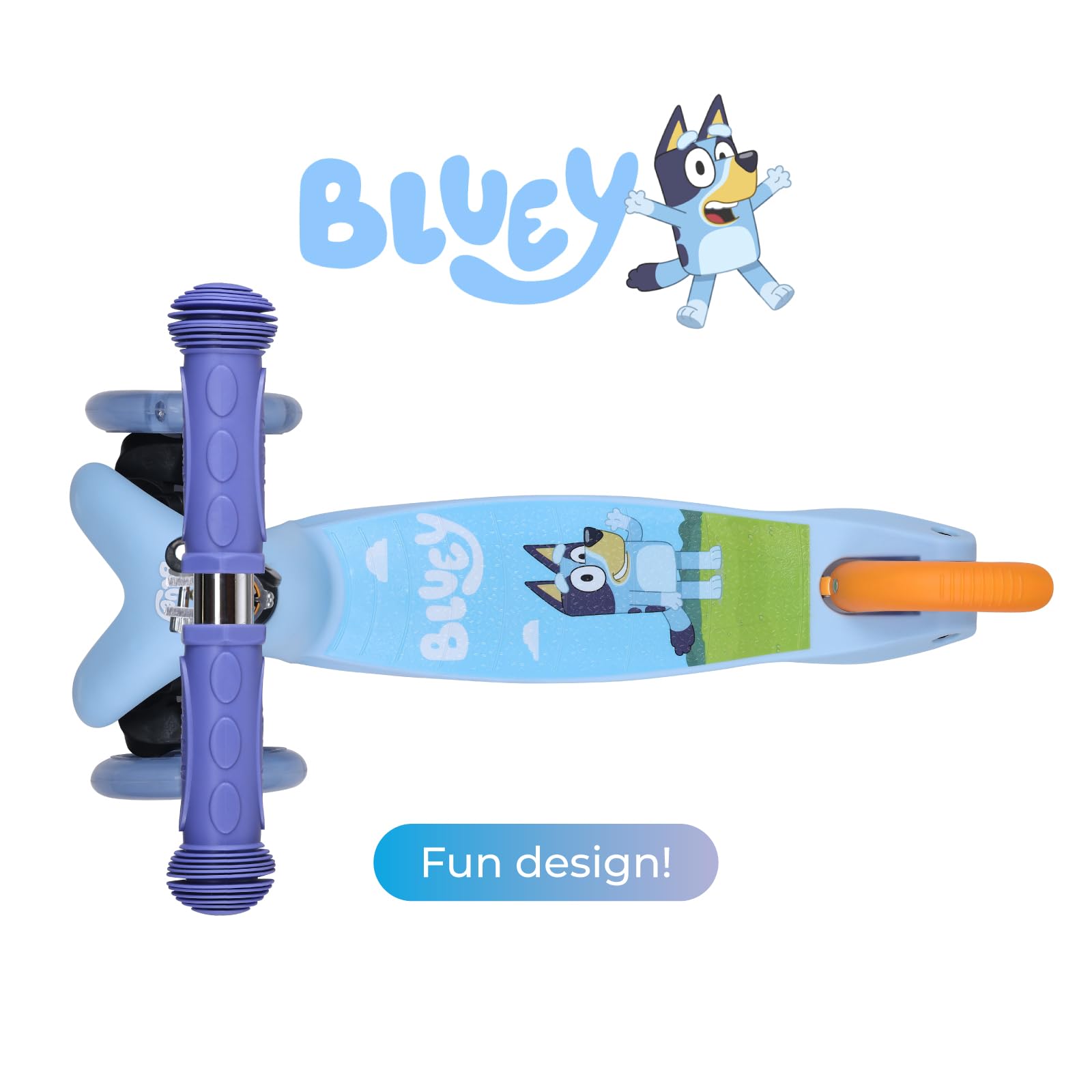 • HIGH QUALITY CONSTRUCTION - Every part of the Bluey kick scooter is made quality materials to give you the best ride possible., TPR non-slip handlebars, PU wheels any nylon deck with stainless steel reinforced base. Better materials mean better quality, our scooter was built to last. Its that simple
