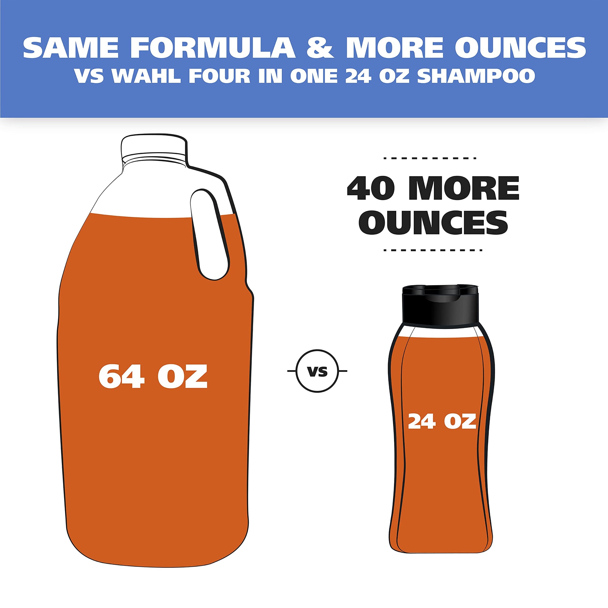 Details: Wahl’s Oatmeal formula shampoo contains coconut lime verbena. This allows us to help gently cleanse, moisturize, & protect your puppy’s delicate skin by providing itch relief. The rich lather helps clean dirty coats and other environmental residue. Since our shampoo is easy to clean, it leaves your dog’s coat looking clean, silky, and smooth. Our plant derived ingredients make our shampoo the choice for owners who want to avoid harsh chemicals for their dog and themselves. Our shampoo is PEG-80 free, alcohol free, paraben free, and pH balanced. Our 64 oz size and concentrated formula allows for up to 70% more baths than other leading brands. While there are no harmful chemicals in our pet products, some pets are sensitive to certain plant oils used in our products. Wahl strongly recommend talking to your vet and doing a small spot test on your pet at least 24 hours before using any new product. Wahl has been serving professional vets and groomers for over 50 years. We are a company of animal lovers that want the best for your family member. Product in packaging may not be exactly the same as photo due to continuous improvements to the product.