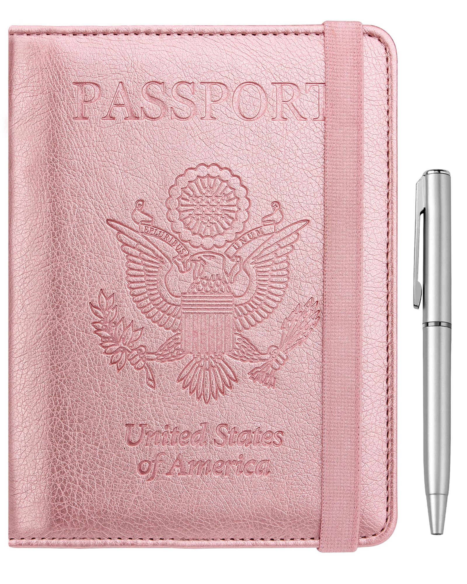 WALNEW Passport Holder for Travel, RFID Passport Cover Wallet for Women Men, PU Leather Passport Book Card Holder Case with Pen, Travelling Essentials for Flying