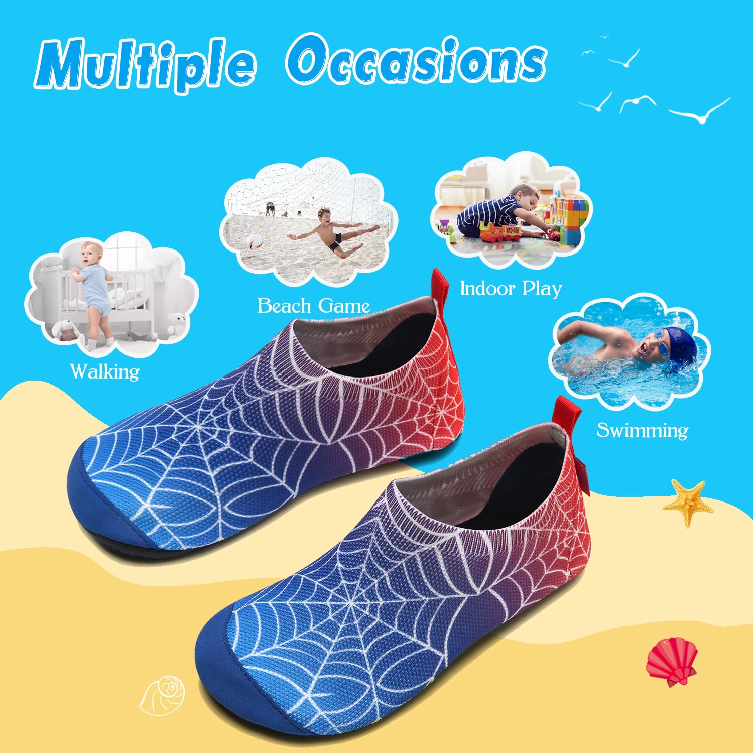 • OCCASIONS: These toddler kids barefoot aqua socks are perfect for the beach, swimming, yoga, fitness exercises, surfing, boating, lake fishing, river activities, water parks, camping, and other outdoor adventures.