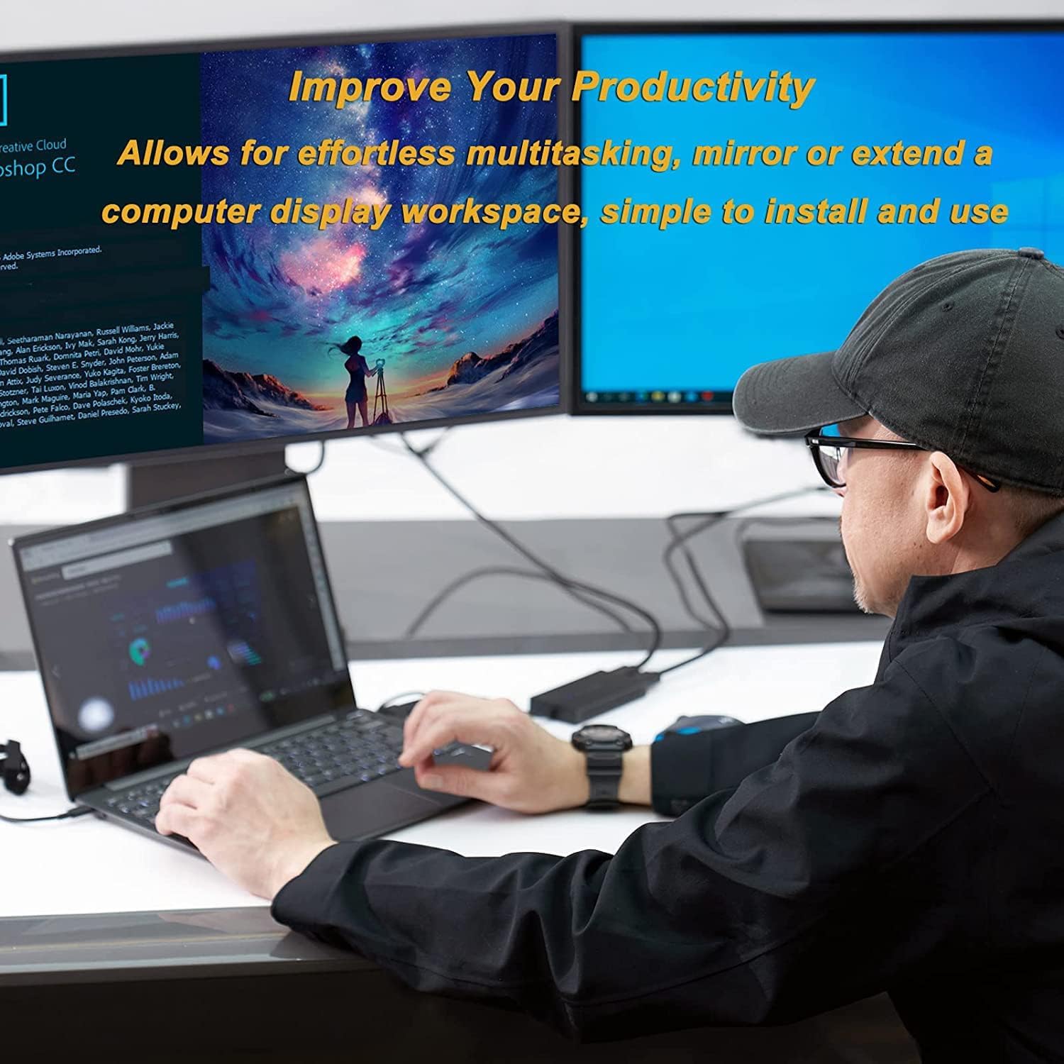 • Dual 2K multi-tasking display: Through a single USB3.0 connection to the host, this HDMI adapter offers you a dual monitor solution. Extend or mirror screens as desired. Supports resolutions up to 1920x1080@60Hz or 1x2560x1440@60Hz+ 1x1920x1080@60Hz. Android devices support mirror mode Only with resolution up to 1080P