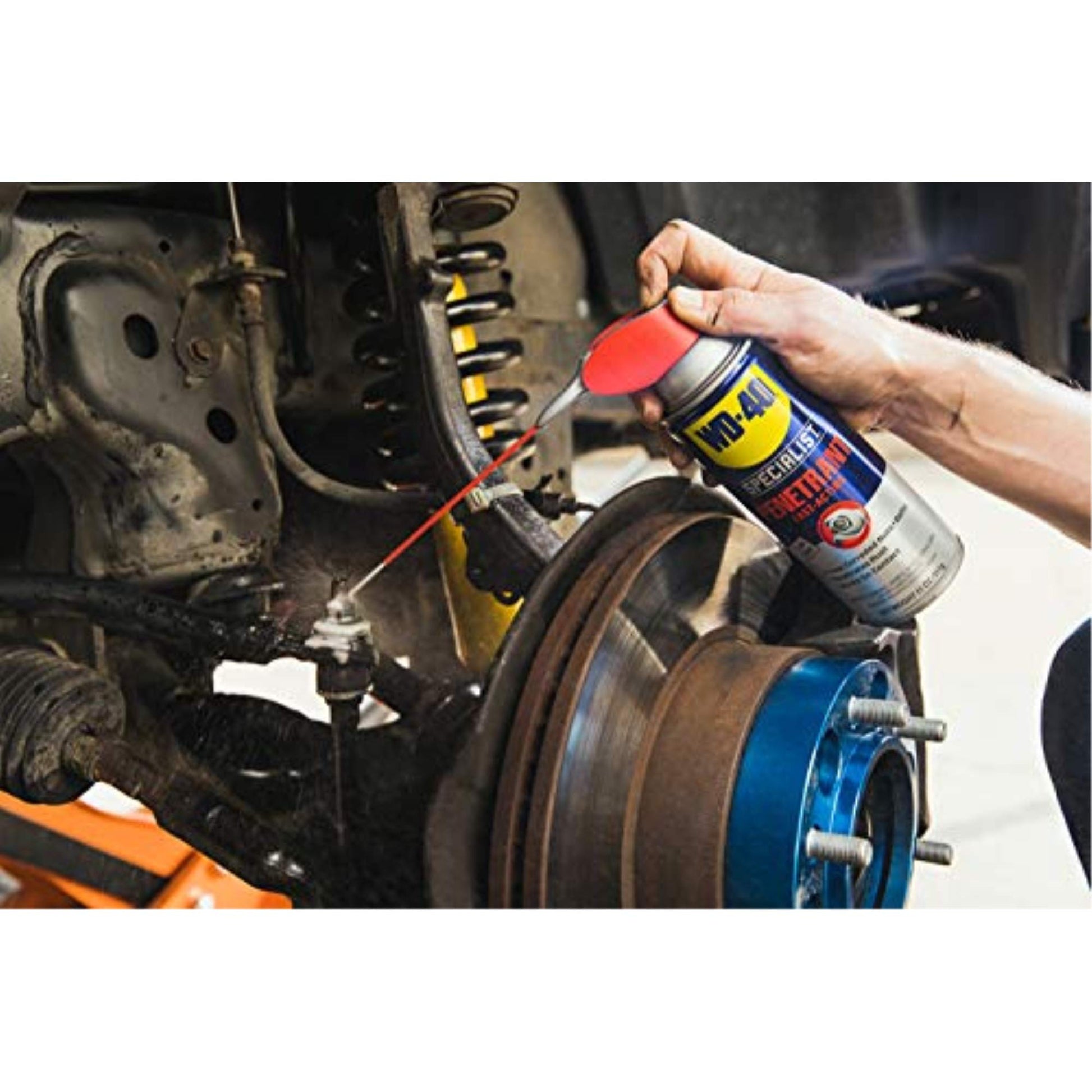 Details: Less time fixing and more time enjoying. WD-40 Specialist Penetrant makes it easy to quickly get the job done right so you bask in your accomplishment and move on. Professional-grade WD-40 Specialist Penetrant formula works fast to break the toughest jams and protects parts from future rust & corrosion. Leaves a thin protective layer that prevents future corrosion without attracting dust or other particles. Designed with safety in mind: Low odor formula, VOC compliant in 50 states. Backed by the excellence of WD-40, the world leader in residential and commercial lubricants. Effective in breaking bonds for most materials - metal, rubber, plastic and more. Penetrates up to 2x faster than the competition* - Penetrates rust to free up stuck, frozen, or seized equipment and parts - Safe to use on metal, rubber and plastic parts - Ideal for use on nuts, bolts, threads and locks - 50-state VOC compliant. *Test Lab: Fred Cuneo (3rd Party); Nail Climb Test; Test date: 03/2021. **Test Lab: WD-40 Co. Technical Center (Pine Brook, NJ); ASTM B117; Test date: 02/2021.